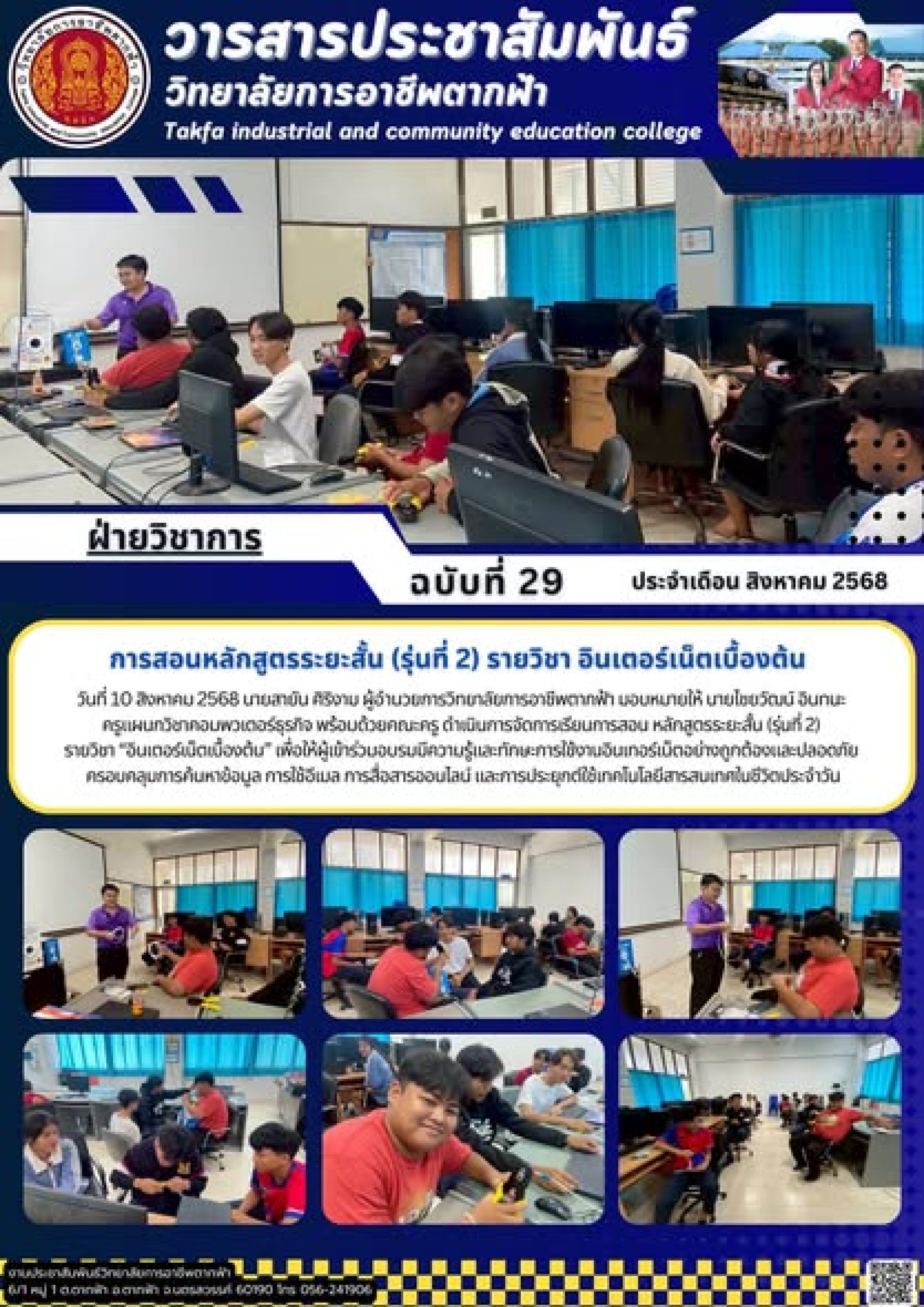 วารสารตากฟ้า ประจำเดือน สิงหาคม 2568 ฉบับที่ 29 การสอนหลักสูตรระยะสั้น (รุ่นที่ 2) รายวิชา อินเตอร์เน็ตเบื้องต้น