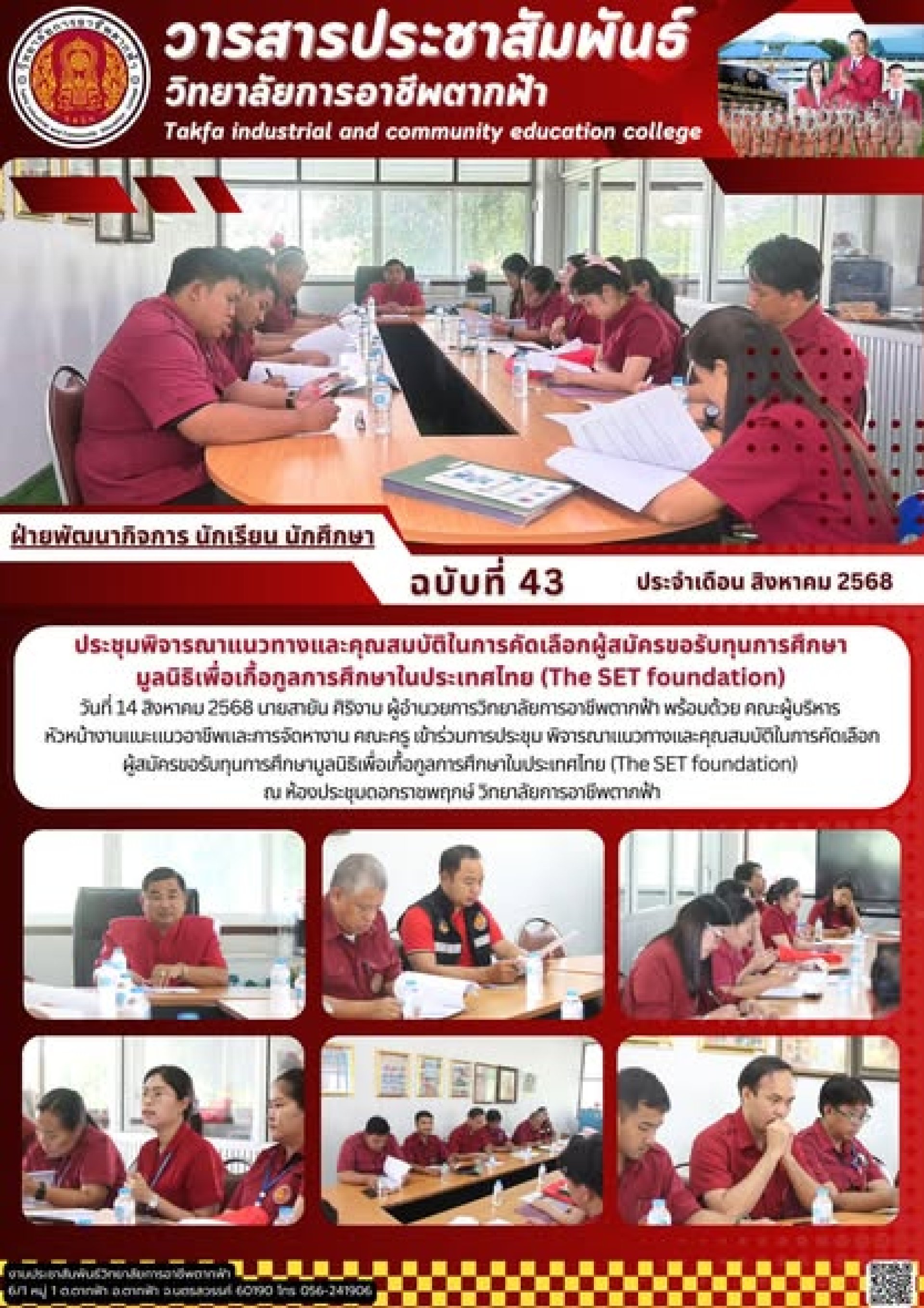 วารสารตากฟ้า ประจำเดือน สิงหาคม 2568 ฉบับที่ 43 ประชุมพิจารณาแนวทางและคุณสมบัติในการคัดเลือกผู้สมัครขอรับทุนการศึกษามูลนิธิเพื่อเกื้อกูลการศึกษาในประเทศไทย (The SET foundation)