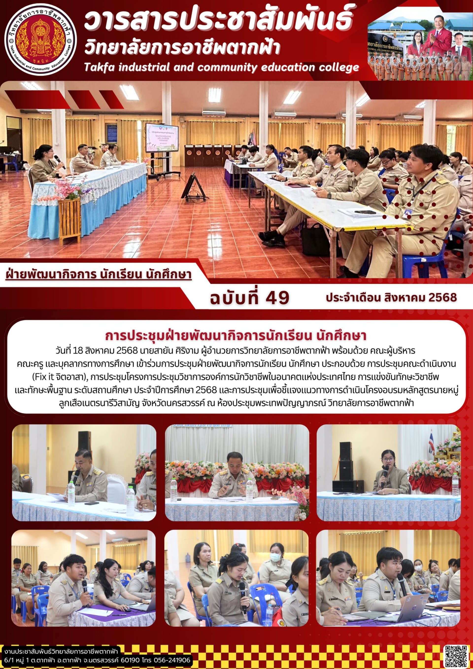 วารสารตากฟ้า ประจำเดือน สิงหาคม 2568 ฉบับที่ 49 การประชุมฝ่ายพัฒนากิจการนักเรียน นักศึกษา