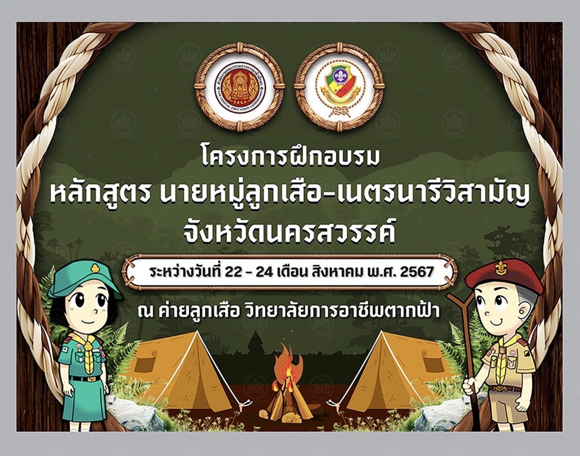 วิทยาลัยการอาชีพตากฟ้า ดำเนินการจัดโครงการฝึกอบรมหลักสูตรนายหมู่ลูกเสือ-เนตรนารีวิสามัญ จังหวัดนครสวรรค์ ระหว่างวันที่ 22 24 สิงหาคม พ.ศ. 2567 ณ ค่ายลูกเสือ วิทยาลัยการอาชีพตากฟ้า