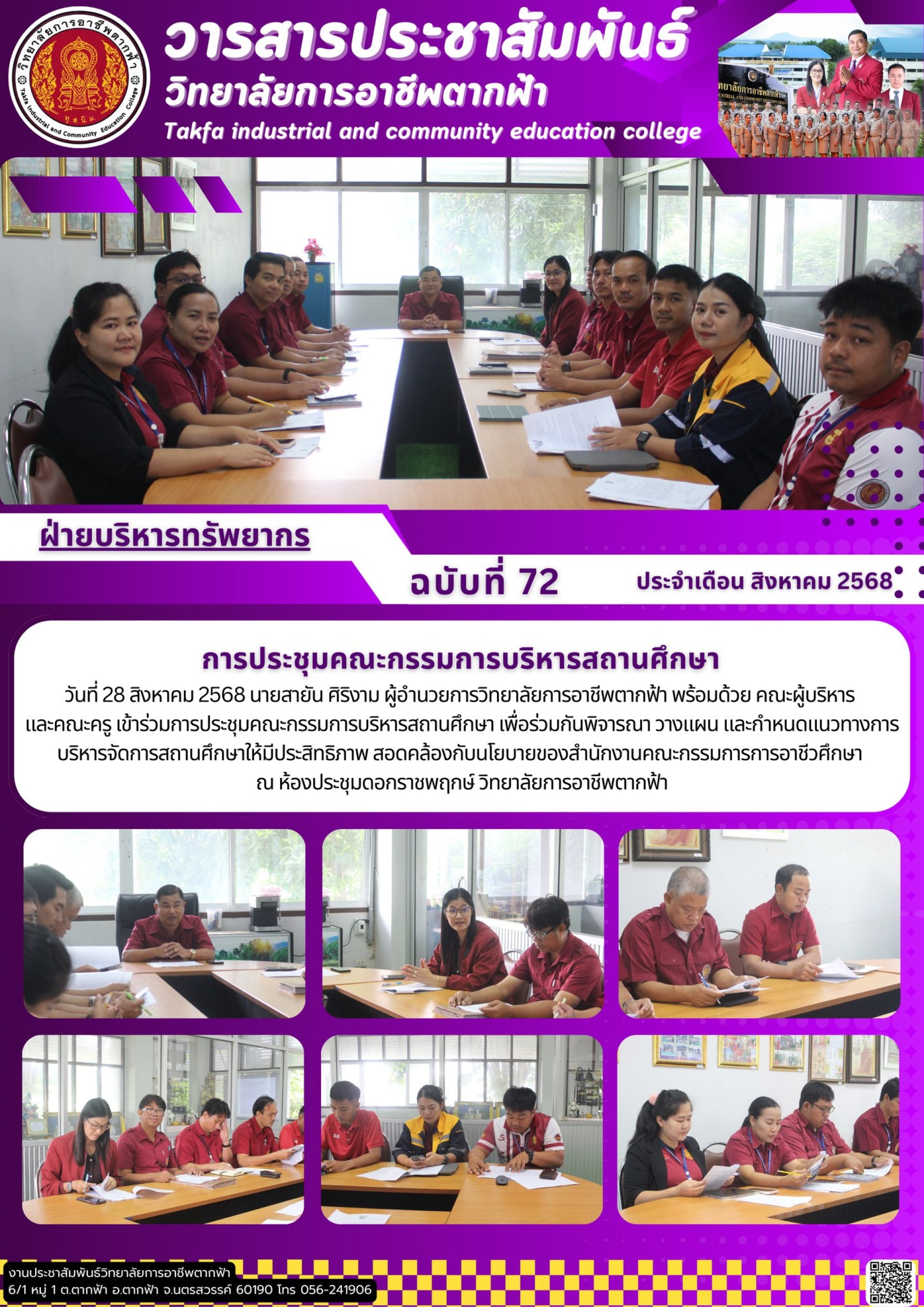 วารสารตากฟ้า ประจำเดือน สิงหาคม 2568 ฉบับที่ 72 การประชุมคณะกรรมการบริหารสถานศึกษา