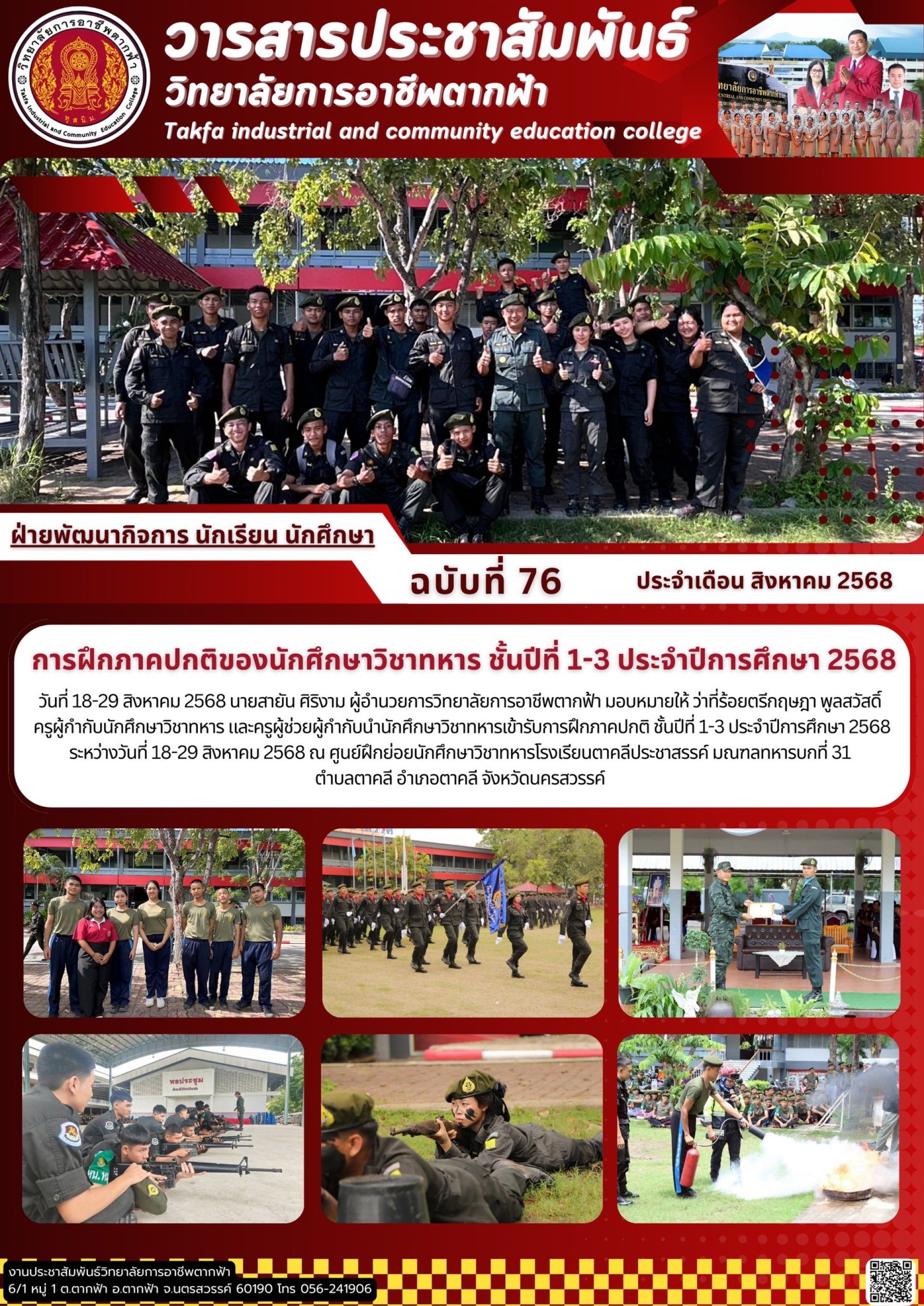 วารสารตากฟ้า ประจำเดือน สิงหาคม 2568 ฉบับที่ 76 การฝึกภาคปกติของนักศึกษาวิชาทหาร ชั้นปีที่ 1-3 ประจำปีการศึกษา 2568