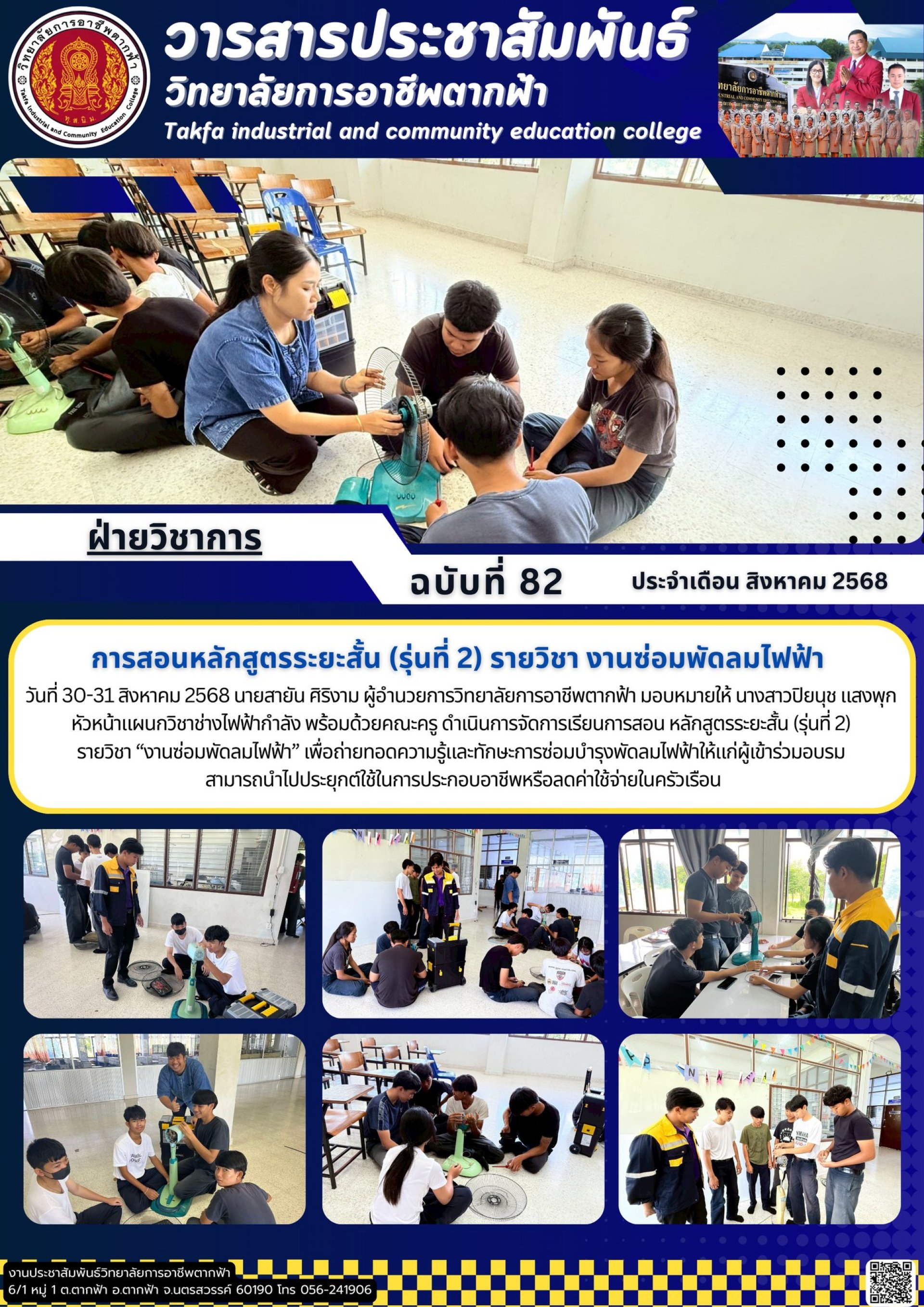 วารสารตากฟ้า ประจำเดือน สิงหาคม 2568 ฉบับที่ 82 การสอนหลักสูตรระยะสั้น (รุ่นที่ 2) รายวิชา งานซ่อมพัดลมไฟฟ้า