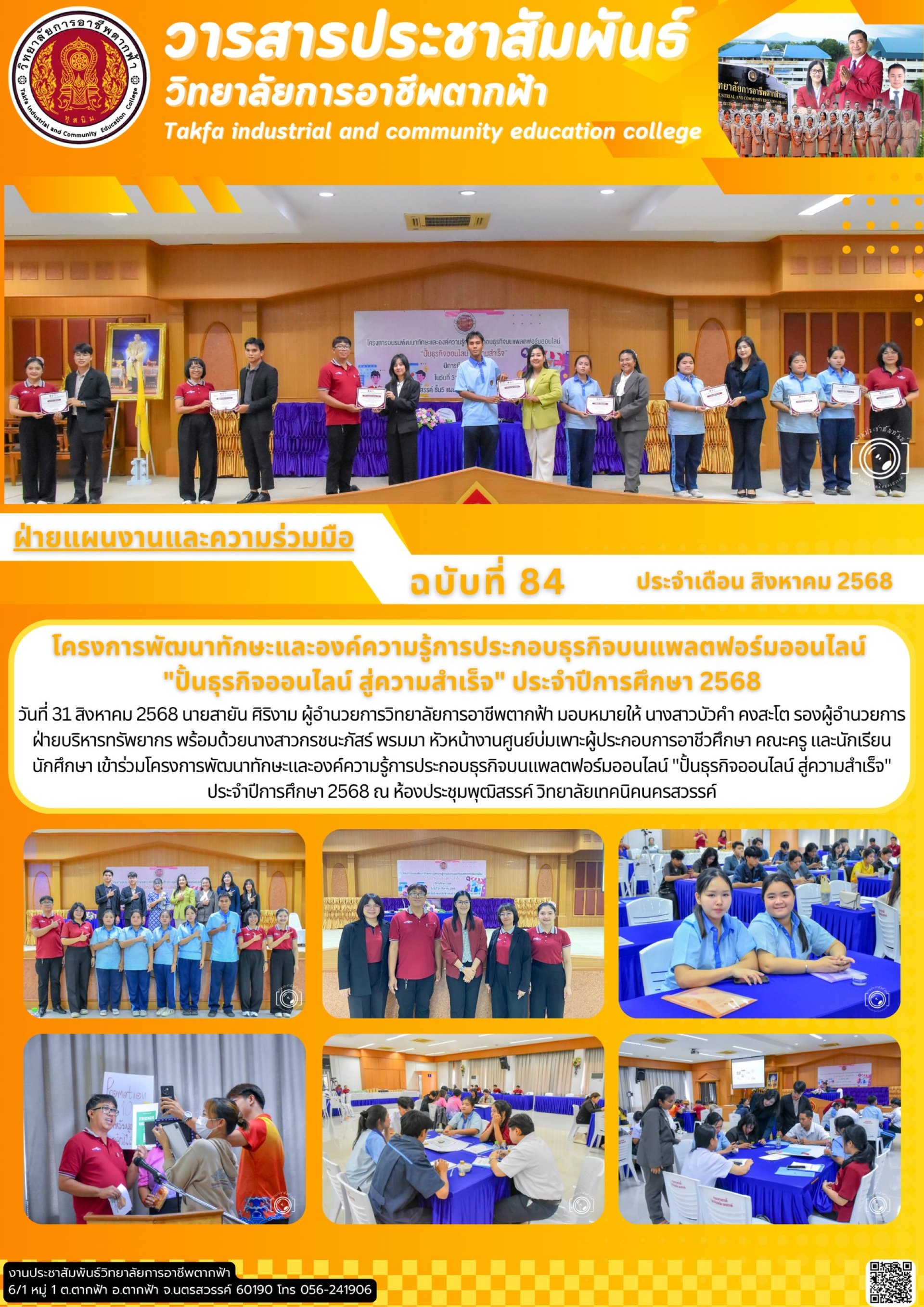 วารสารตากฟ้า ประจำเดือน สิงหาคม 2568 ฉบับที่ 84 โครงการพัฒนาทักษะและองค์ความรู้การประกอบธุรกิจบนแพลตฟอร์มออนไลน์ "ปั้นธุรกิจออนไลน์ สู่ความสำเร็จ" ประจำปีการศึกษา 2568