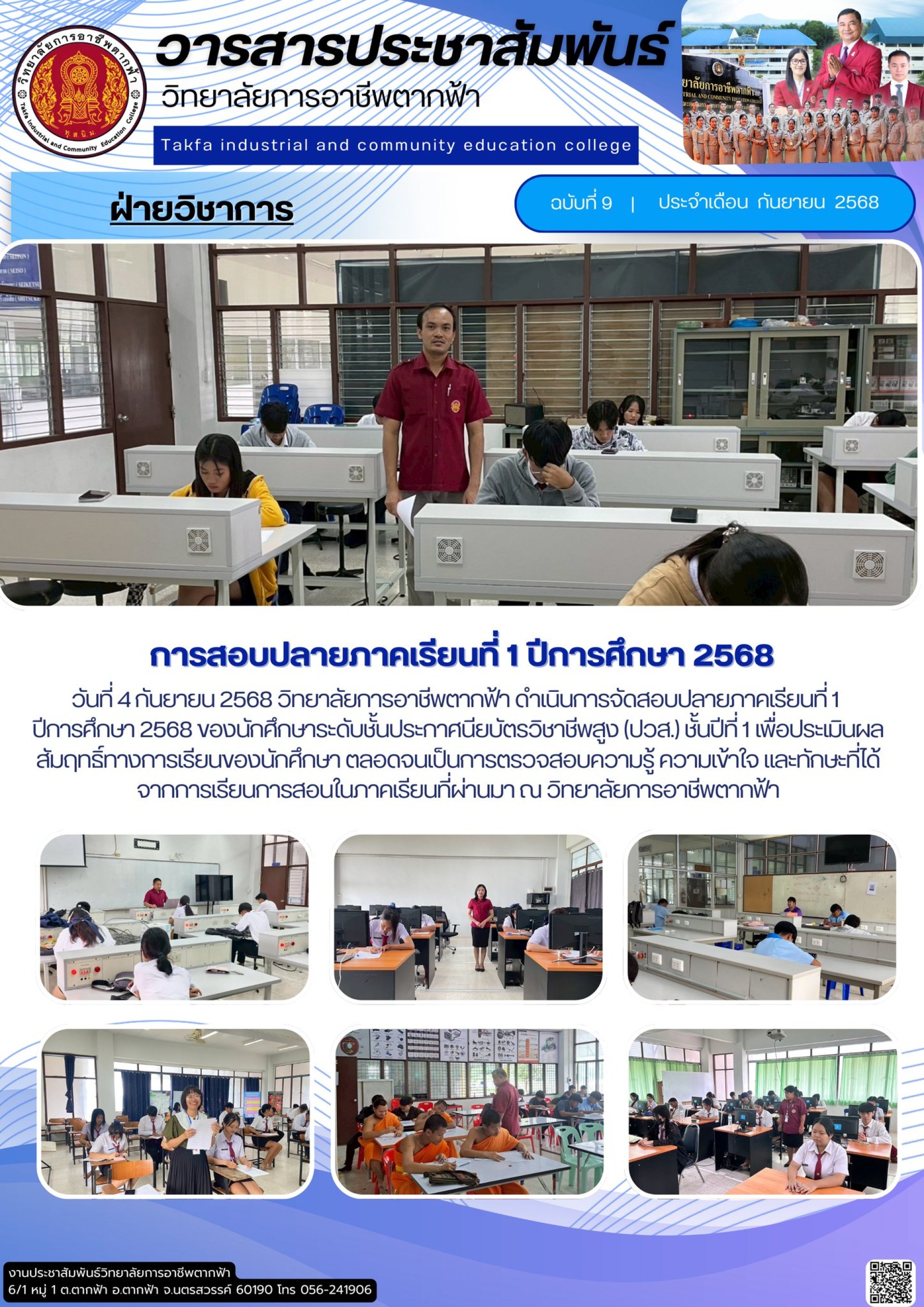 วารสารตากฟ้า ประจำเดือน กันยายน 2568 ฉบับที่ 9 การสอบปลายภาคเรียนที่ 1 ปีการศึกษา 2568