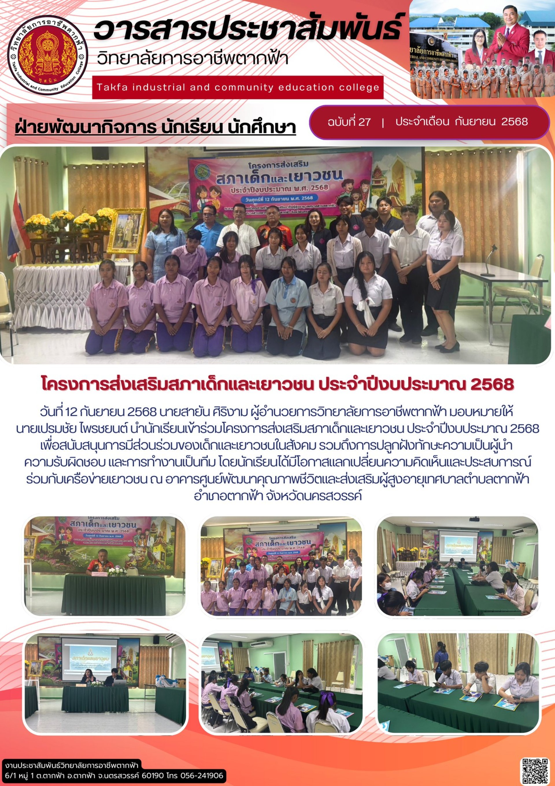 วารสารตากฟ้า ประจำเดือน กันยายน 2568 ฉบับที่ 27 โครงการส่งเสริมสภาเด็กและเยาวชน ประจำปีงบประมาณ 2568