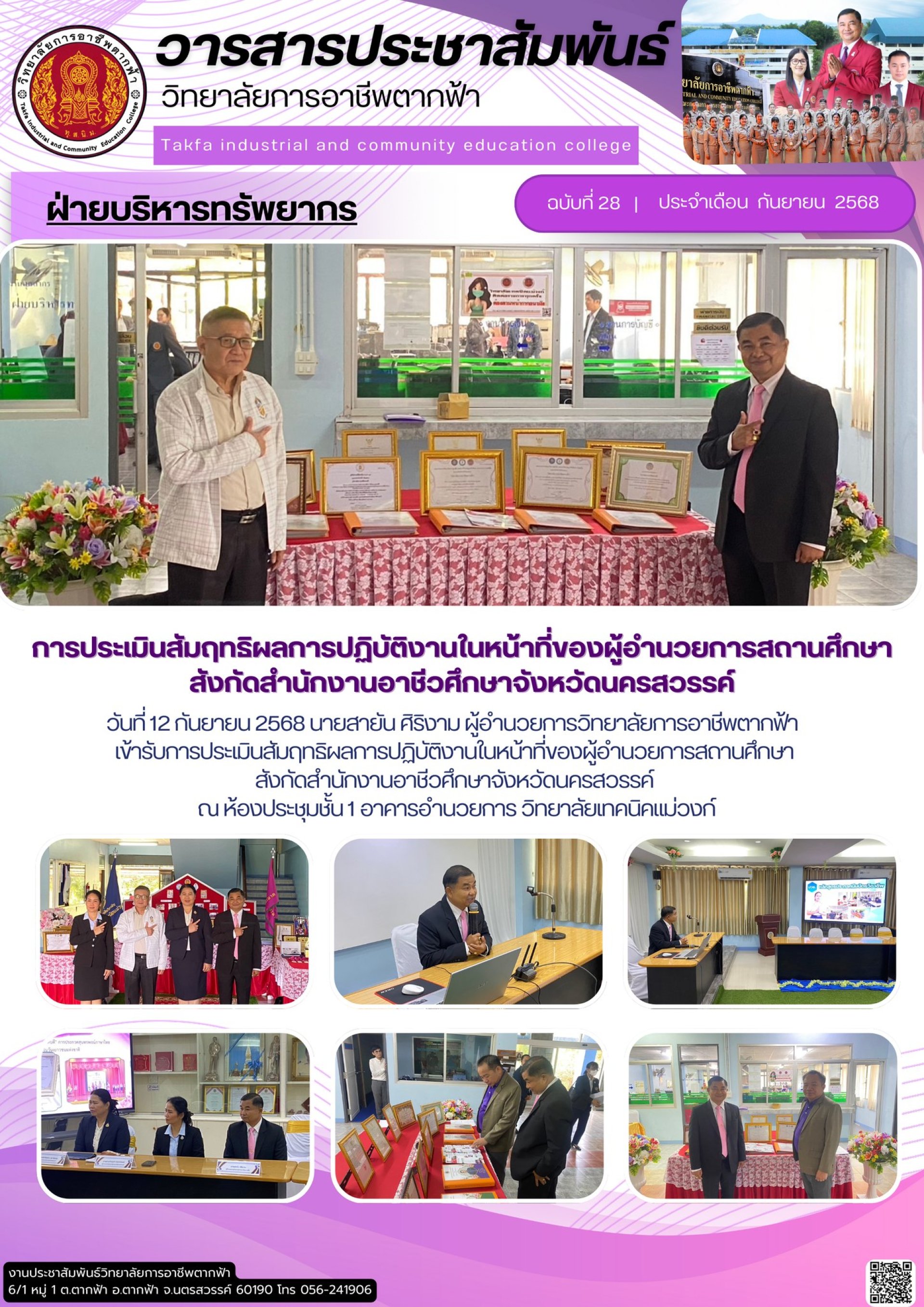 วารสารตากฟ้า ประจำเดือน กันยายน 2568 ฉบับที่ 28 การประเมินสัมฤทธิผลการปฏิบัติงานในหน้าที่ของผู้อำนวยการสถานศึกษาสังกัดสำนักงานอาชีวศึกษาจังหวัดนครสวรรค์