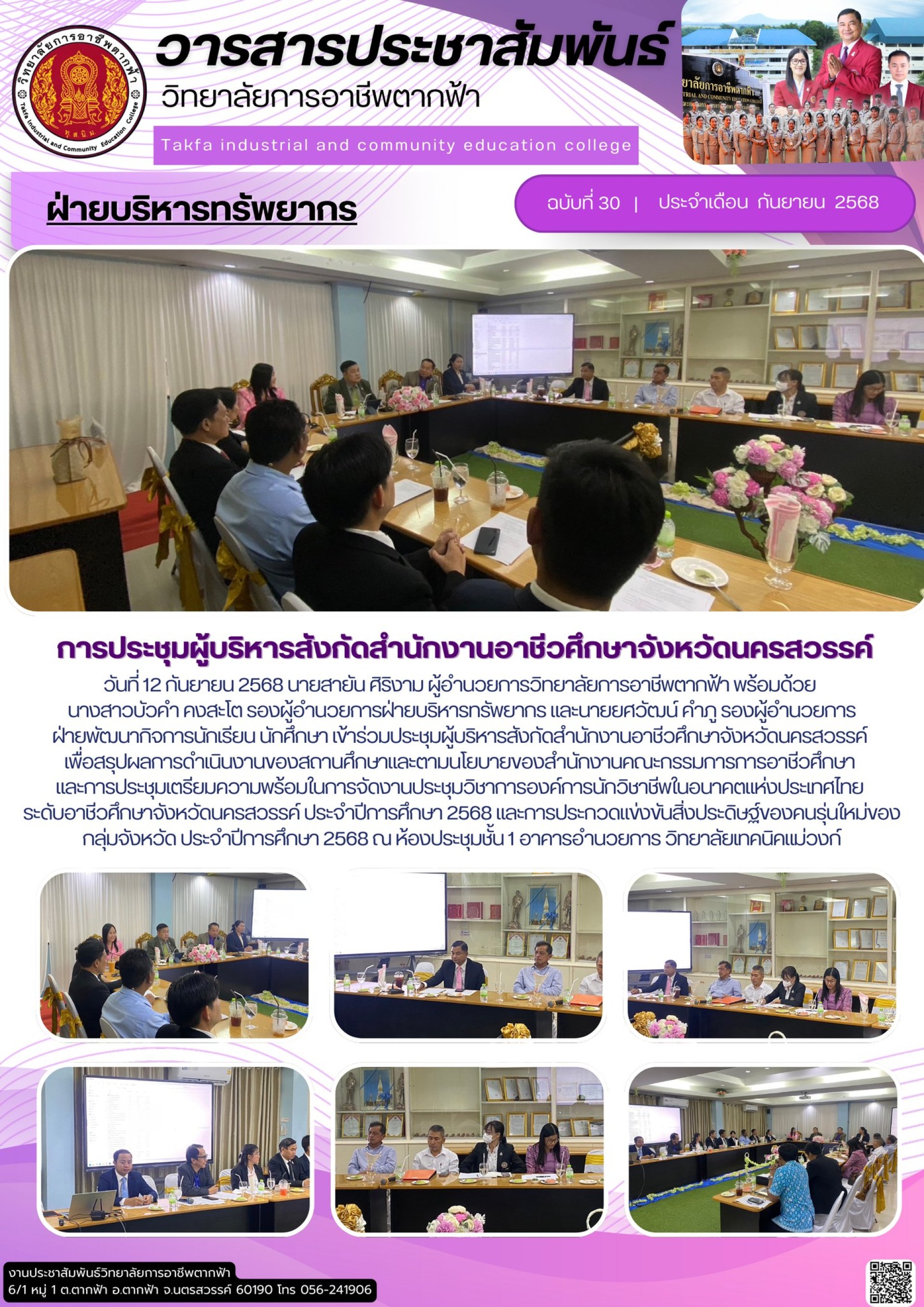วารสารตากฟ้า ประจำเดือน กันยายน 2568 ฉบับที่ 30 การประชุมผู้บริหารสังกัดสำนักงานอาชีวศึกษาจังหวัดนครสวรรค์