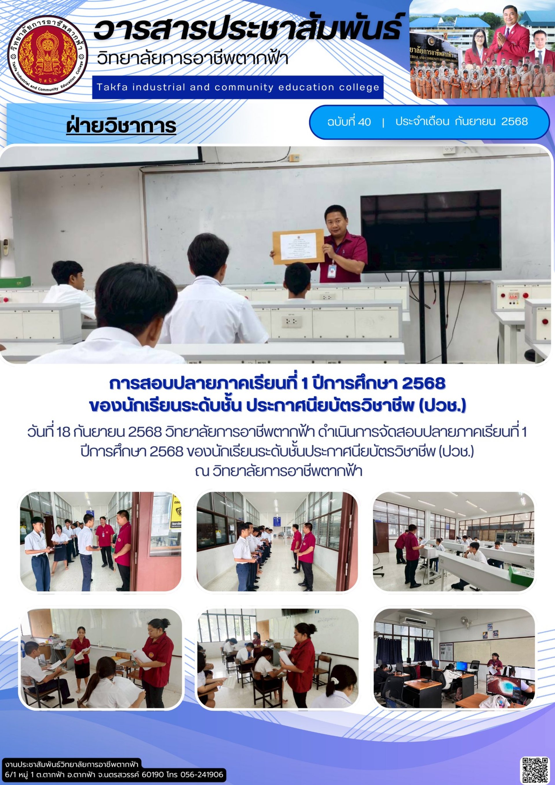 วารสารตากฟ้า ประจำเดือน กันยายน 2568 ฉบับที่ 40 การสอบปลายภาคเรียนที่ 1 ปีการศึกษา 2568 ของนักเรียนระดับชั้น ประกาศนียบัตรวิชาชีพ (ปวช.)