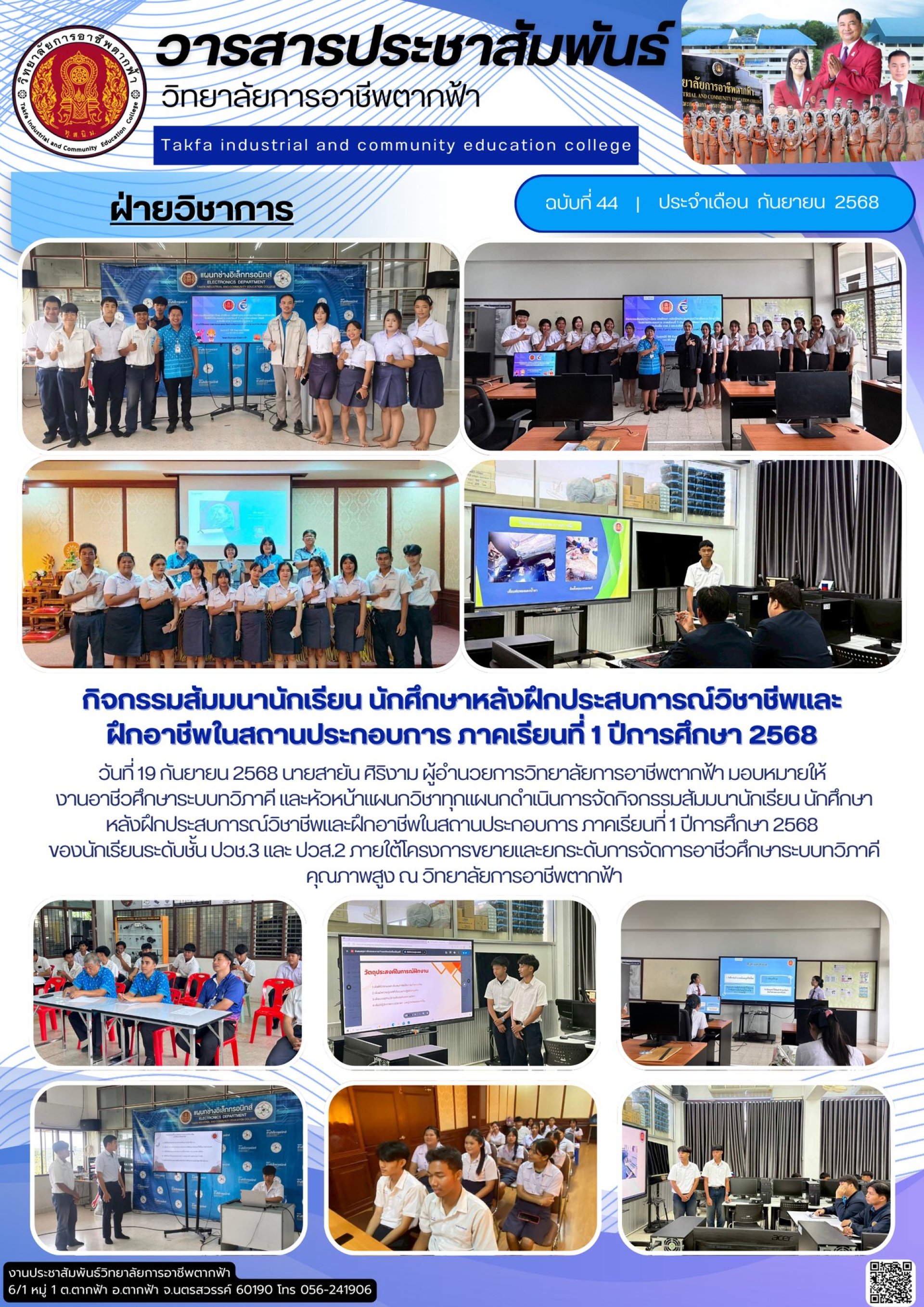 วารสารตากฟ้า ประจำเดือน กันยายน 2568 ฉบับที่ 44 กิจกรรมสัมมนานักเรียน นักศึกษาหลังฝึกประสบการณ์วิชาชีพและฝึกอาชีพในสถานประกอบการ ภาคเรียนที่ 1 ปีการศึกษา 2568