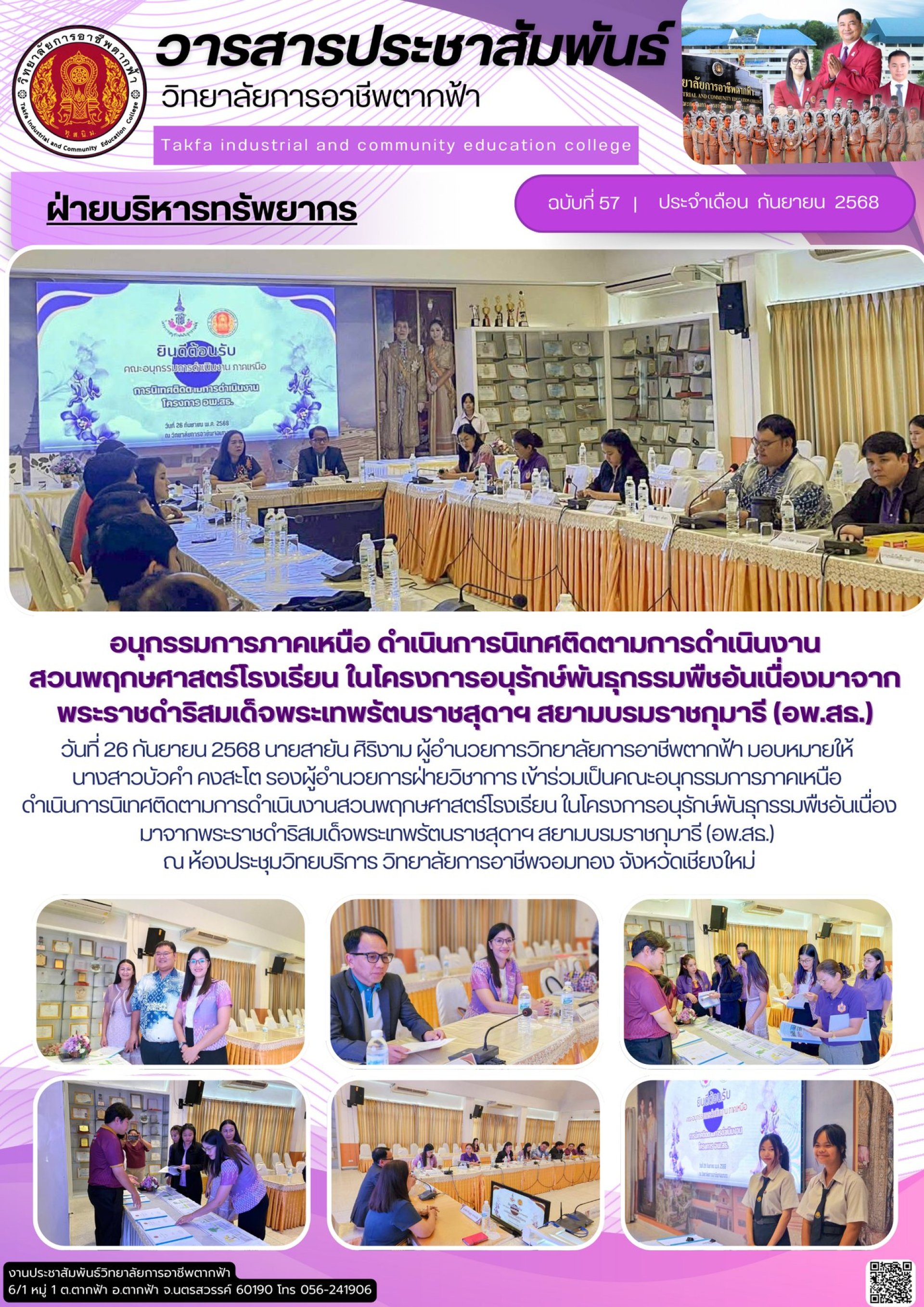 วารสารตากฟ้า ประจำเดือน กันยายน 2568 ฉบับที่ 57 อนุกรรมการภาคเหนือ ดำเนินการนิเทศติดตามการดำเนินงานสวนพฤกษศาสตร์โรงเรียน ในโครงการอนุรักษ์พันธุกรรมพืชอันเนื่องมาจากพระราชดำริสมเด็จพระเทพรัตนราชสุดาฯ สยามบรมราชกุมารี (อพ.สธ.)