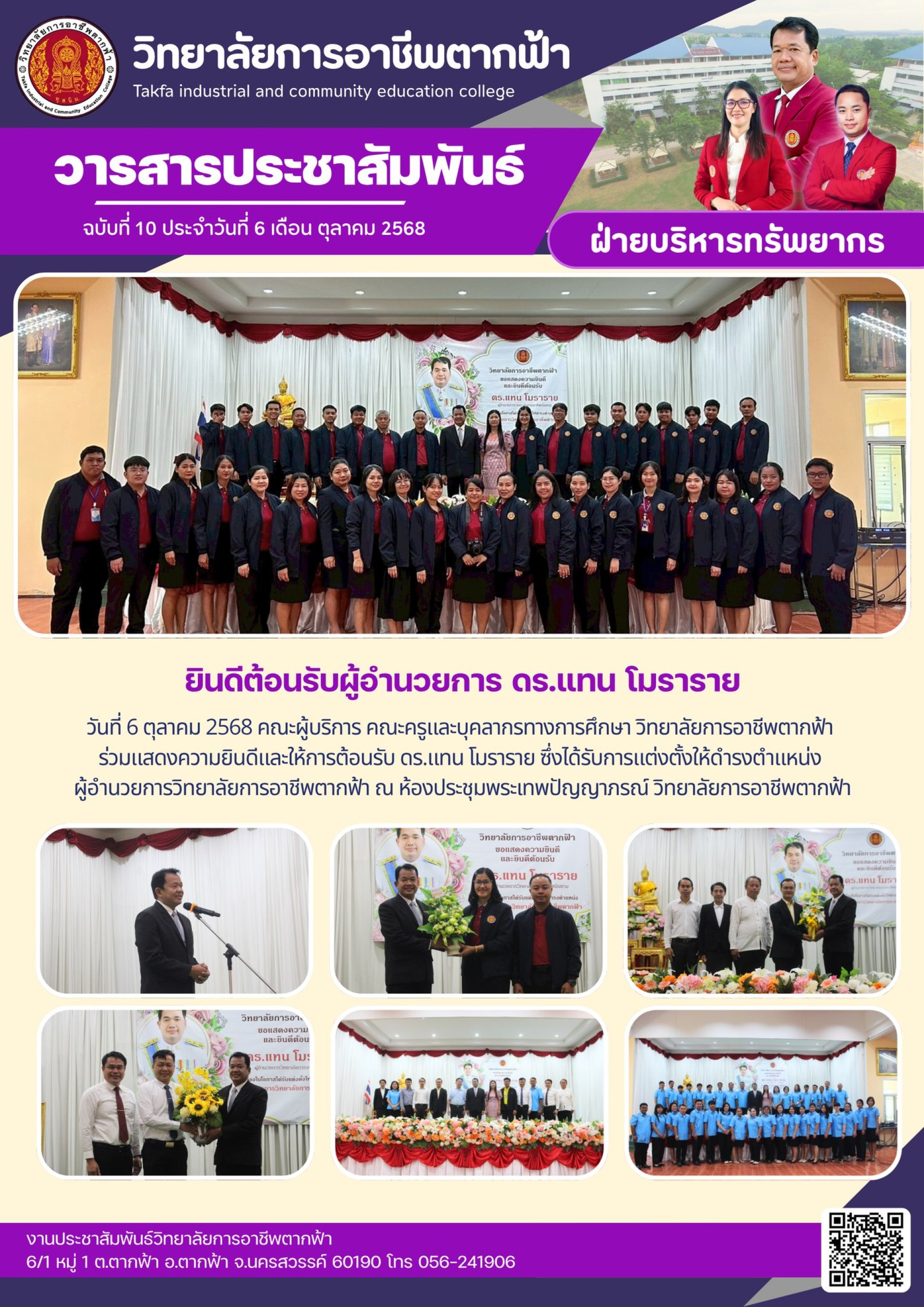 วารสารตากฟ้า ประจำเดือน ตุลาคม 2568 ฉบับที่ 10 ยินดีต้อนรับผู้อำนวยการ ดร.แทน โมราราย