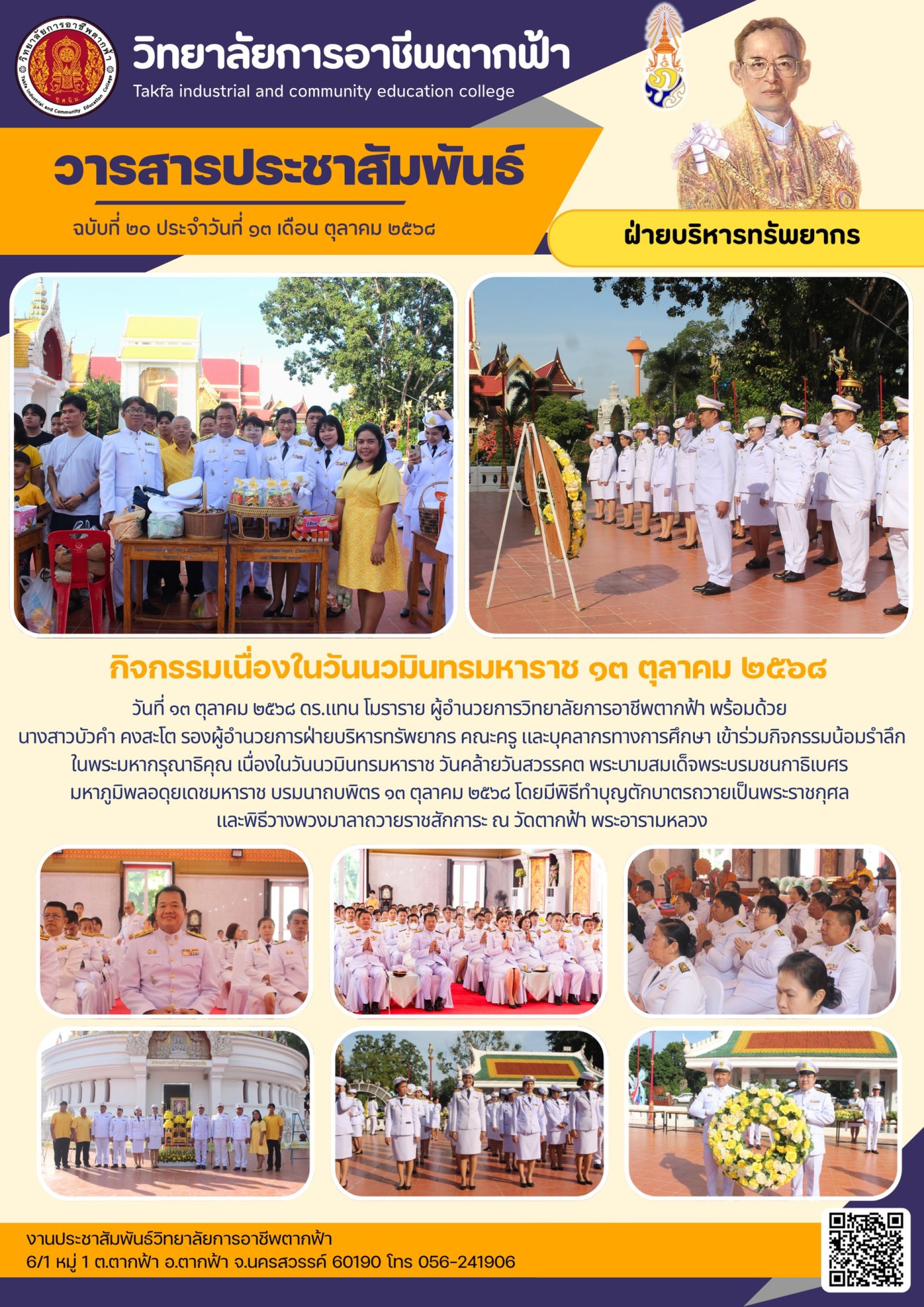 วารสารตากฟ้า ประจำเดือน ตุลาคม ๒๕๖๘ ฉบับที่ ๒๐ กิจกรรมเนื่องในวันนวมินทรมหาราช ๑๓ ตุลาคม ๒๕๖๘