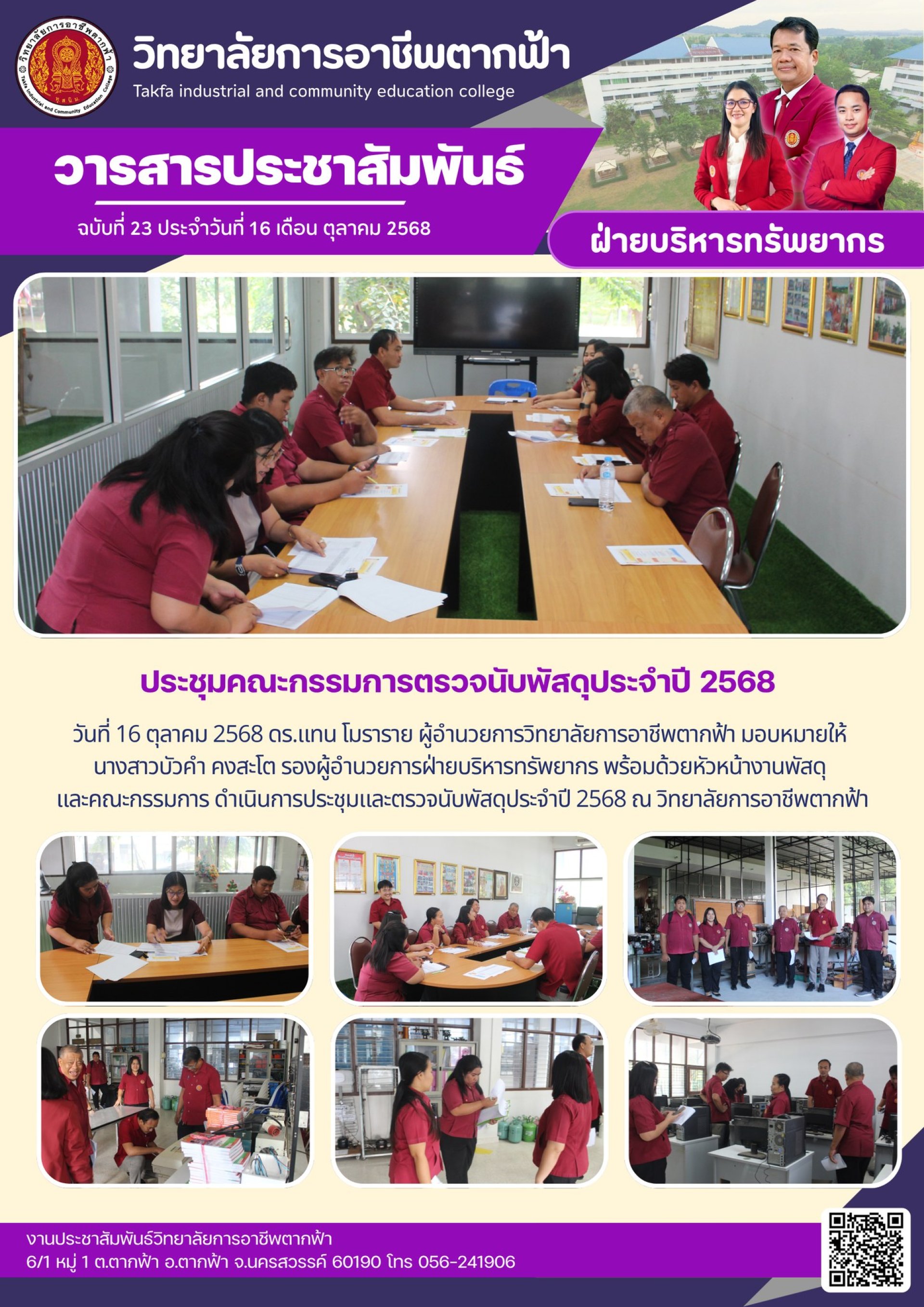 วารสารตากฟ้า ประจำเดือน ตุลาคม 2568 ฉบับที่ 23 ประชุมคณะกรรมการตรวจนับพัสดุประจำปี 2568