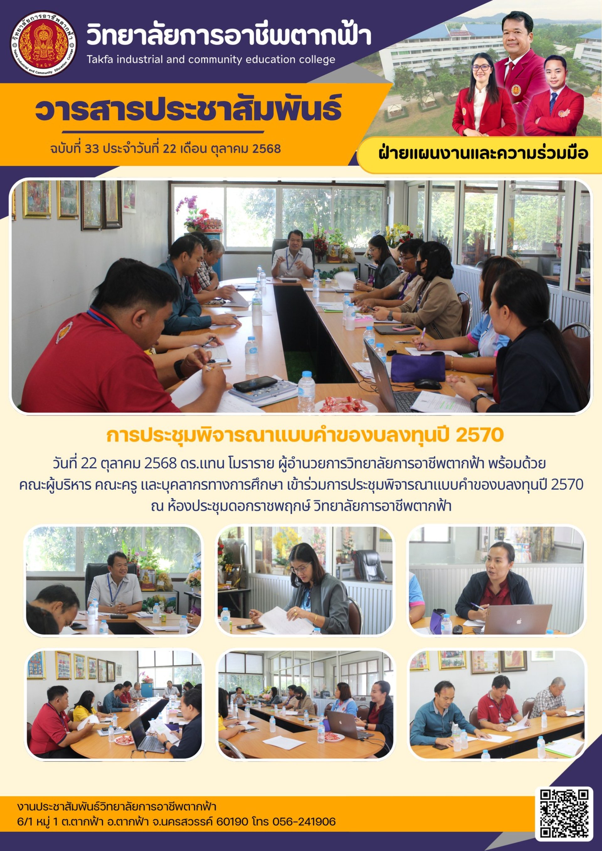 วารสารตากฟ้า ประจำเดือน ตุลาคม 2568 ฉบับที่ 33 การประชุมพิจารณาแบบคำของบลงทุนปี 2570