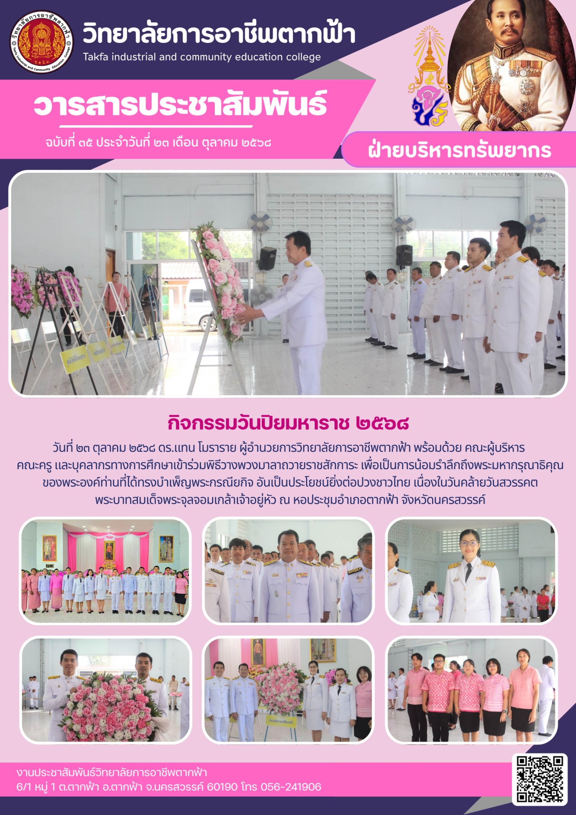 วารสารตากฟ้า ประจำเดือน ตุลาคม ๒๕๖๘ ฉบับที่ ๓๕ กิจกรรมวันปิยมหาราช ๒๕๖๘