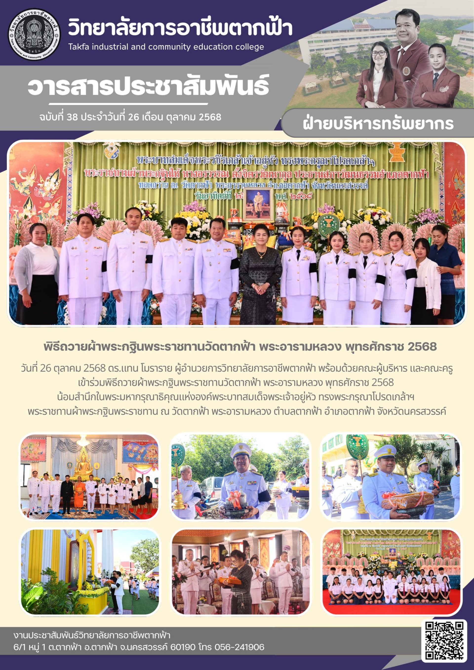 วารสารตากฟ้า ประจำเดือน ตุลาคม 2568 ฉบับที่ 38 พิธีถวายผ้าพระกฐินพระราชทานวัดตากฟ้า พระอารามหลวง พุทธศักราช 2568