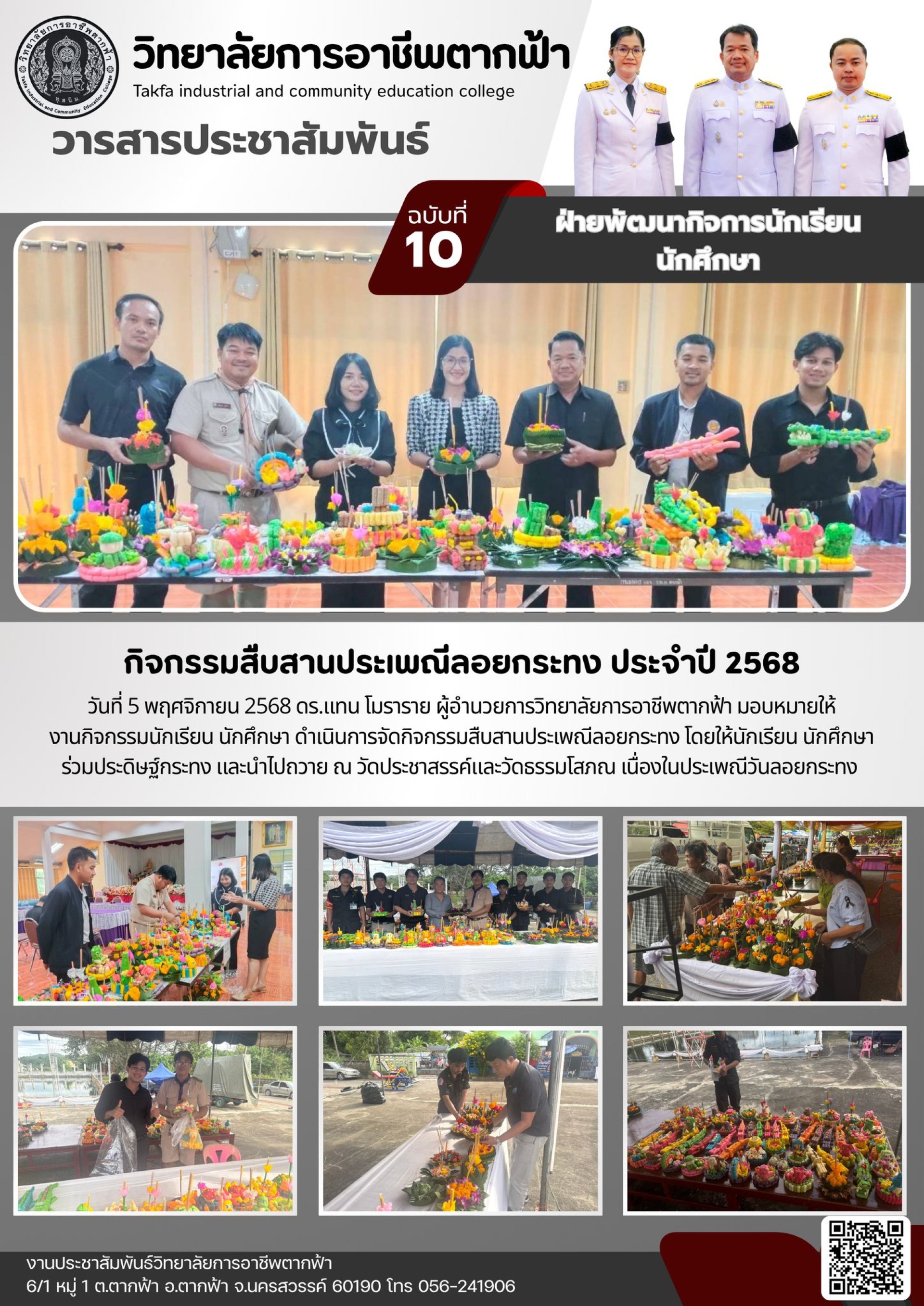 วารสารตากฟ้า ประจำเดือน พฤศจิกายน 2568 ฉบับที่ 10 กิจกรรมสืบสานประเพณีลอยกระทง ประจำปี 2568