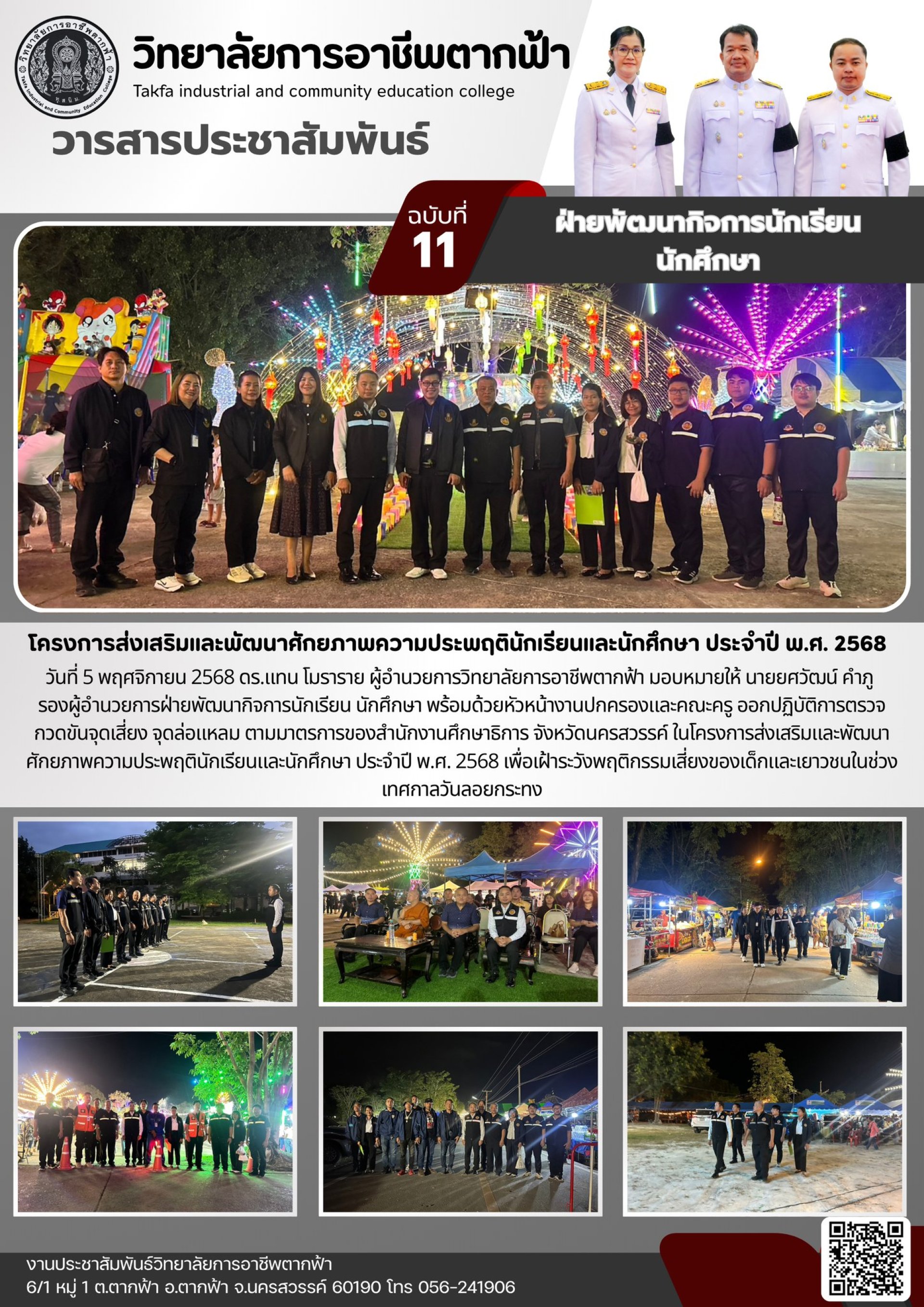 วารสารตากฟ้า ประจำเดือน พฤศจิกายน 2568 ฉบับที่ 11 โครงการส่งเสริมและพัฒนาศักยภาพความประพฤตินักเรียนและนักศึกษา ประจำปี พ.ศ. 2568