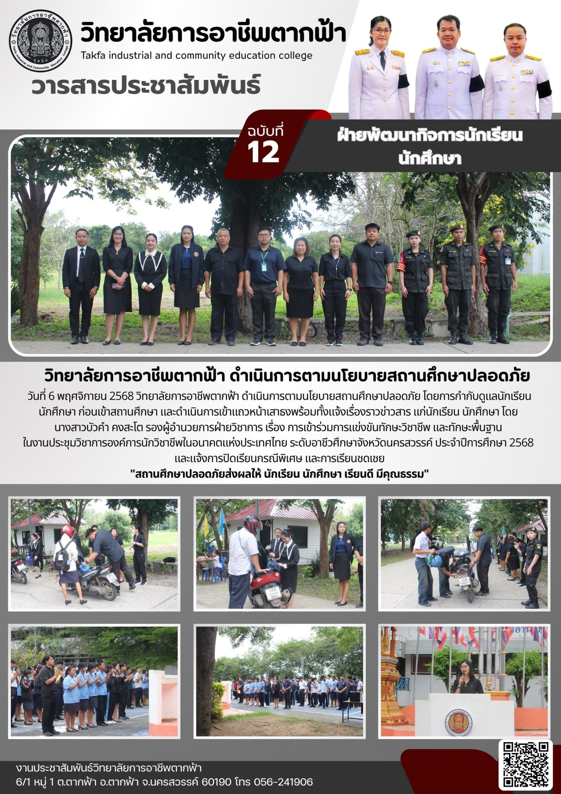วารสารตากฟ้า ประจำเดือน พฤศจิกายน 2568 ฉบับที่ 12 วิทยาลัยการอาชีพตากฟ้า ดำเนินการตามนโยบายสถานศึกษาปลอดภัย
