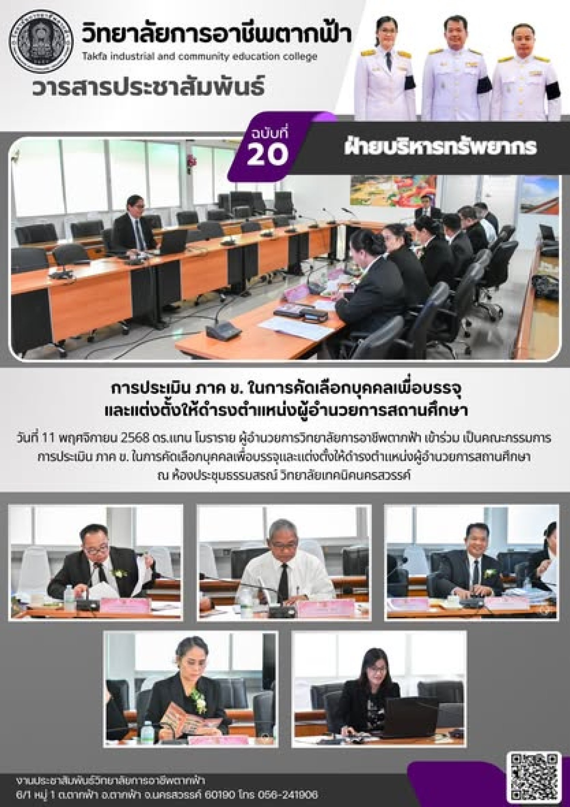 วารสารตากฟ้า ประจำเดือน พฤศจิกายน 2568 ฉบับที่ 20 การประเมิน ภาค ข. ในการคัดเลือกบุคคลเพื่อบรรจุ และแต่งตั้งให้ดำรงตำแหน่งผู้อำนวยการสถานศึกษา