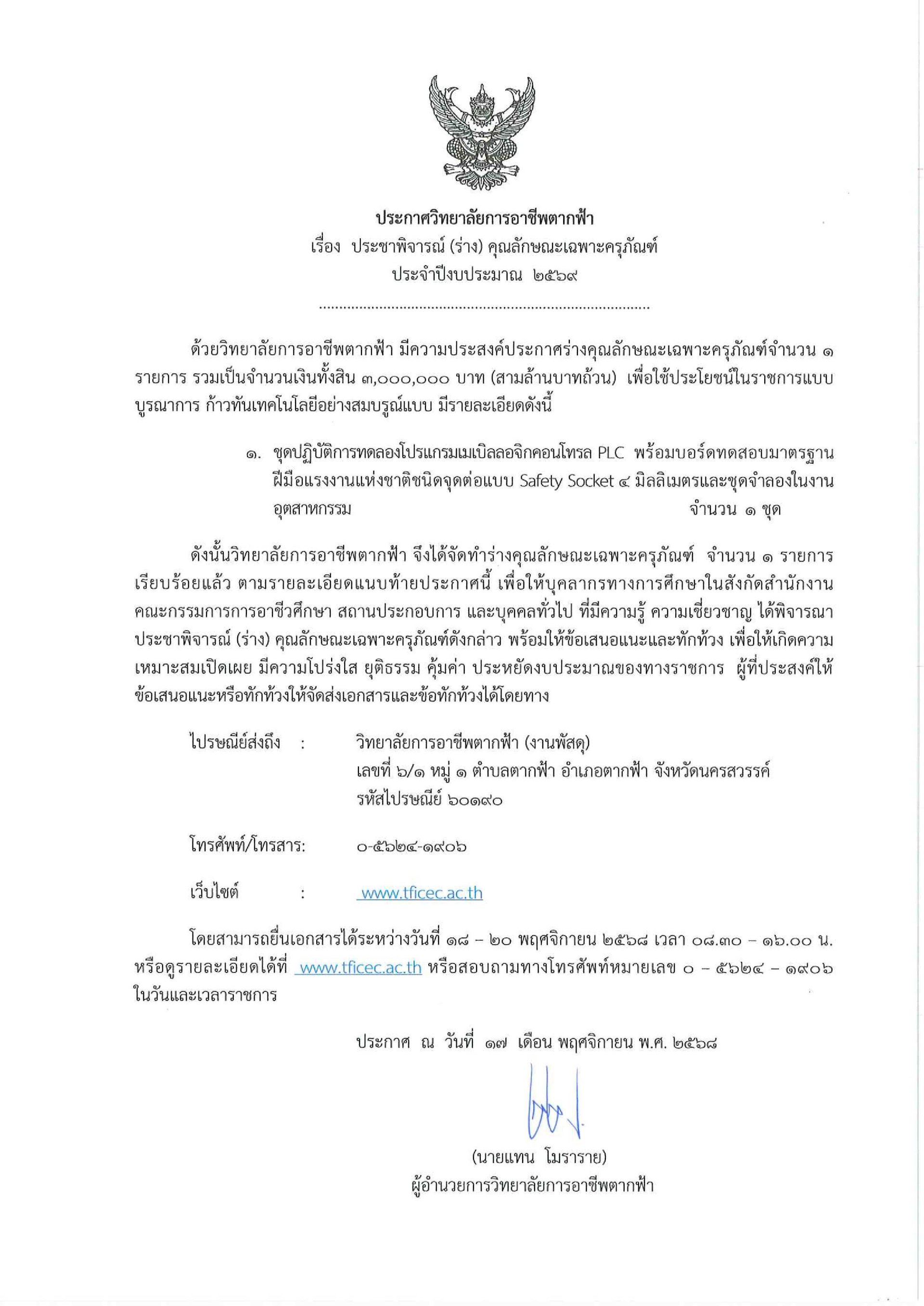 ประชาพิจารณ์ ร่าง คุณลักษณะเฉพาะครุภัณฑ์ประจำปีงบประมาณ 2569 ชุดปฎิบัติการทดลองเมเบิลลอจิก PLC พร้อมบอร์ดมาตรฐานฝีมือแรงงานแห่งชาติ
