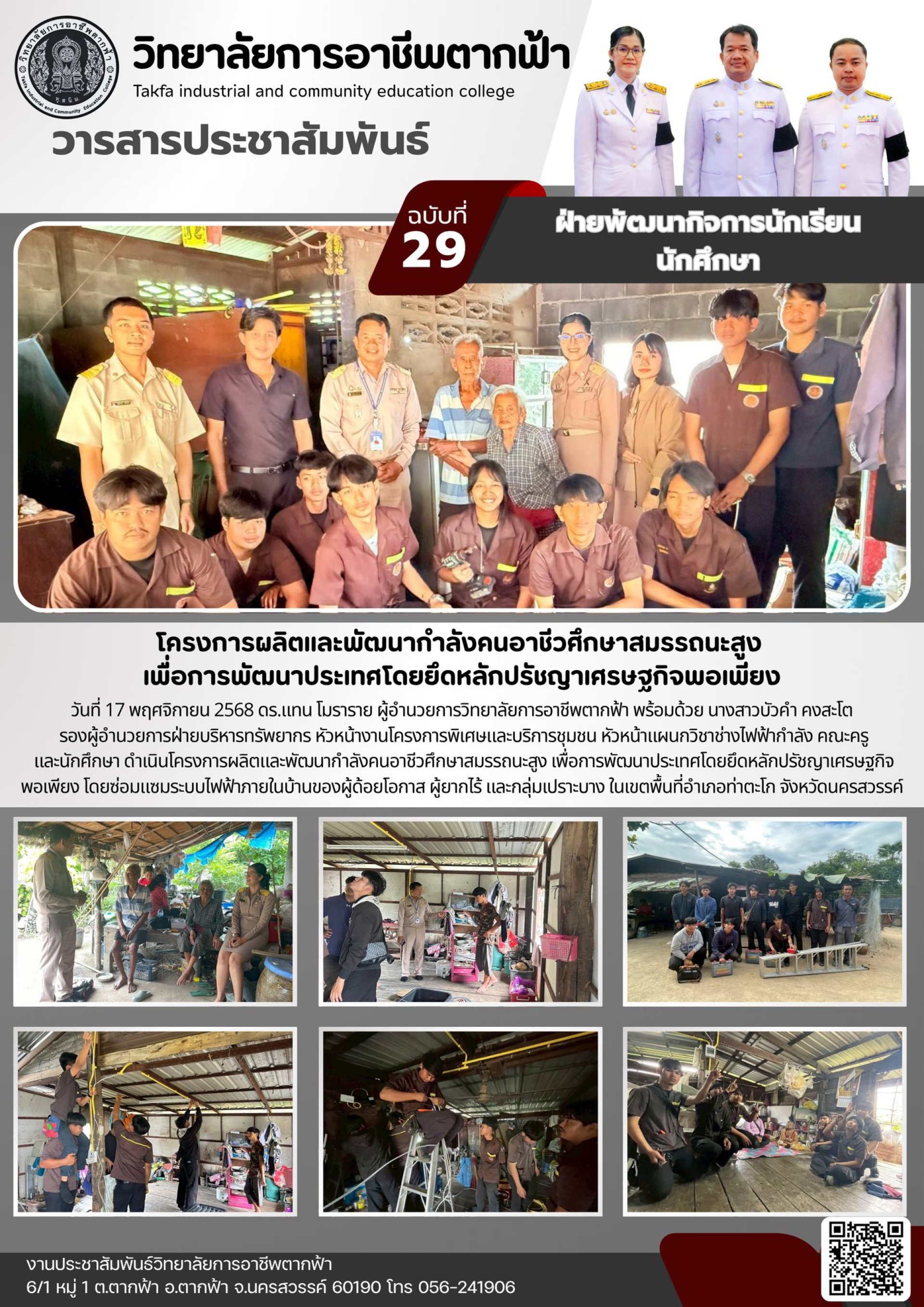 วารสารตากฟ้า ประจำเดือน พฤศจิกายน 2568 ฉบับที่ 29 โครงการผลิตและพัฒนากำลังคนอาชีวศึกษาสมรรถนะสูง เพื่อการพัฒนาประเทศโดยยึดหลักปรัชญาเศรษฐกิจพอเพียง