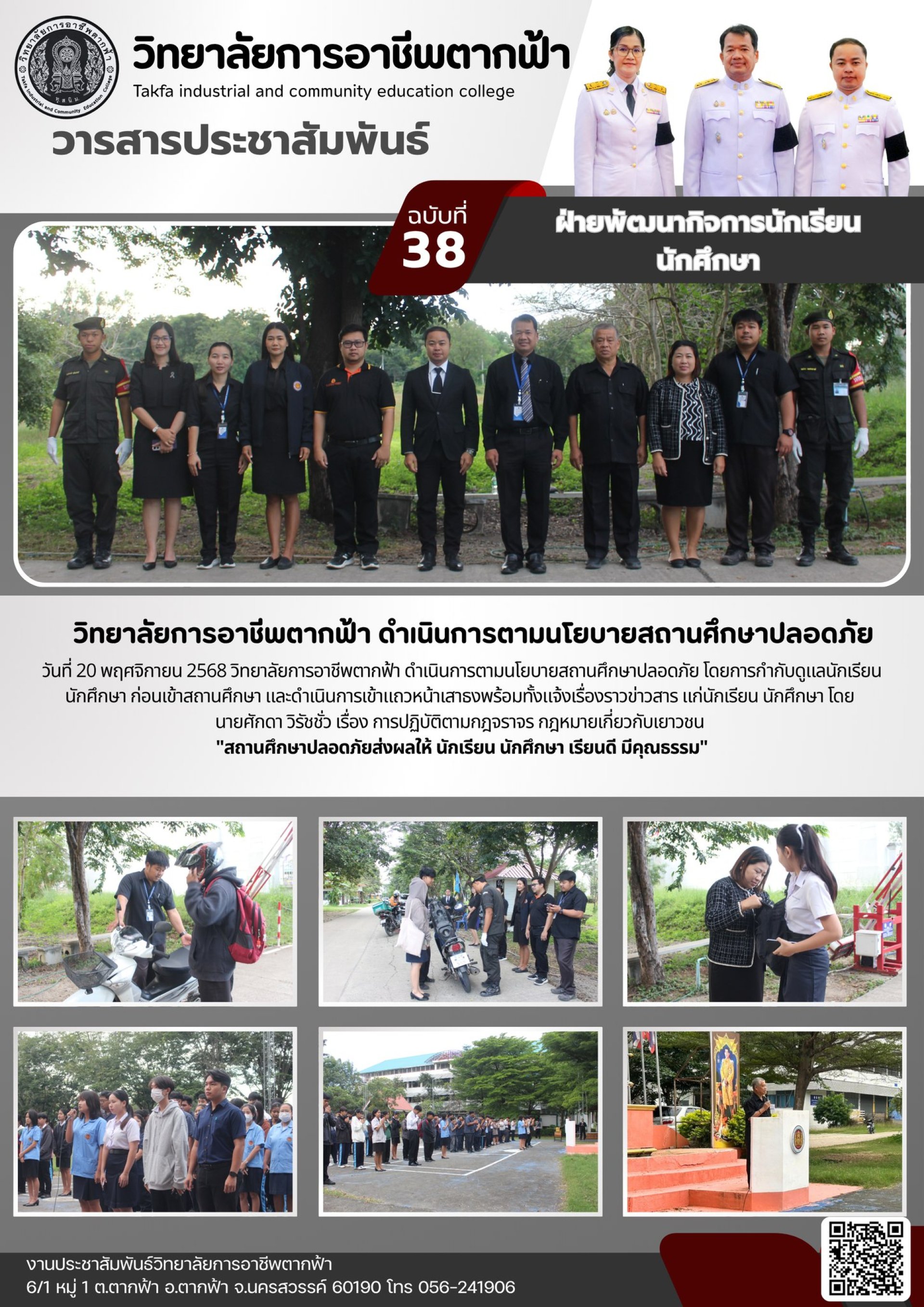 วารสารตากฟ้า ประจำเดือน พฤศจิกายน 2568 ฉบับที่ 38 วิทยาลัยการอาชีพตากฟ้า ดำเนินการตามนโยบายสถานศึกษาปลอดภัย