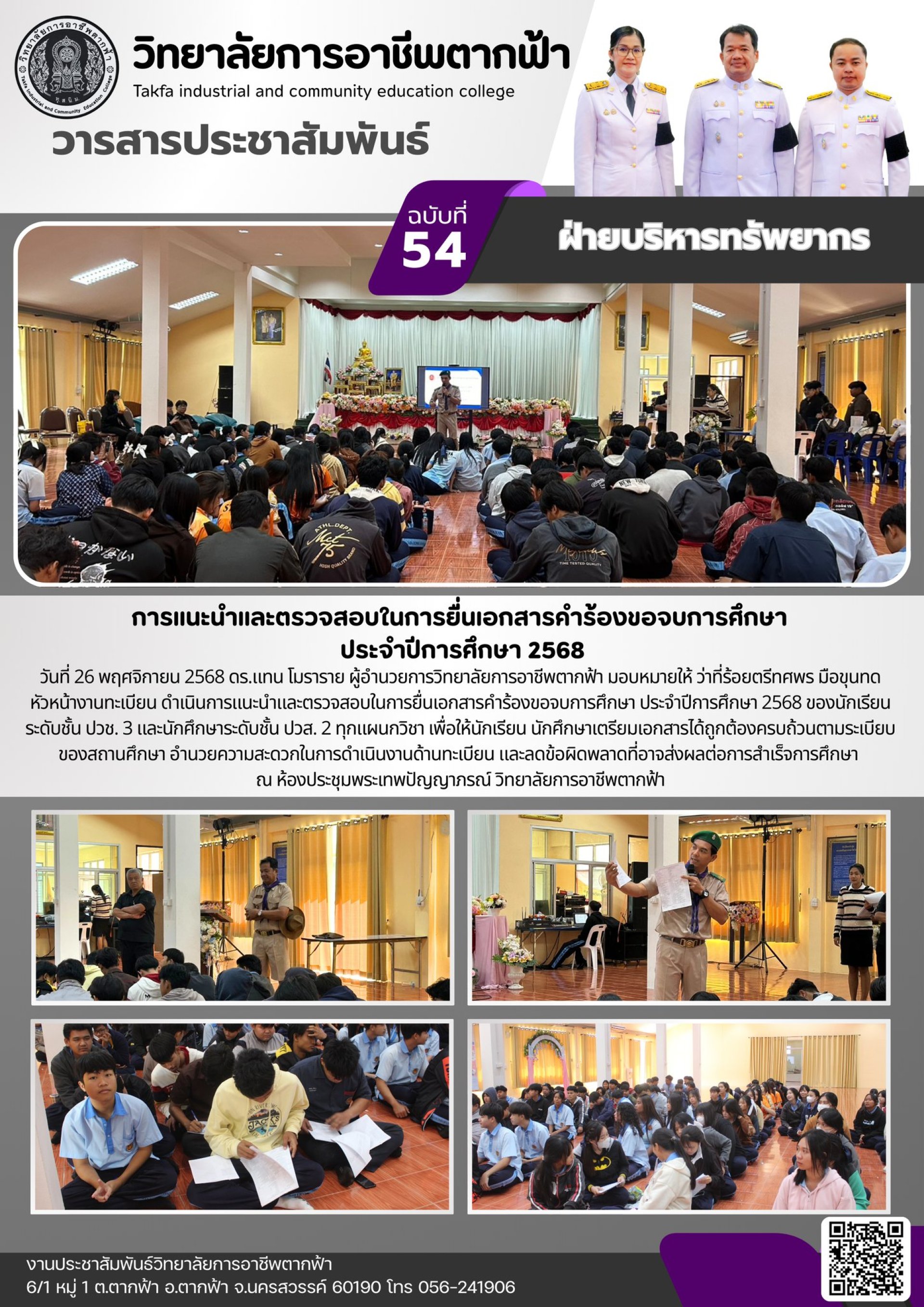 วารสารตากฟ้า ประจำเดือน พฤศจิกายน 2568 ฉบับที่ 54 การแนะนำและตรวจสอบในการยื่นเอกสารคำร้องขอจบการศึกษา ประจำปีการศึกษา 2568