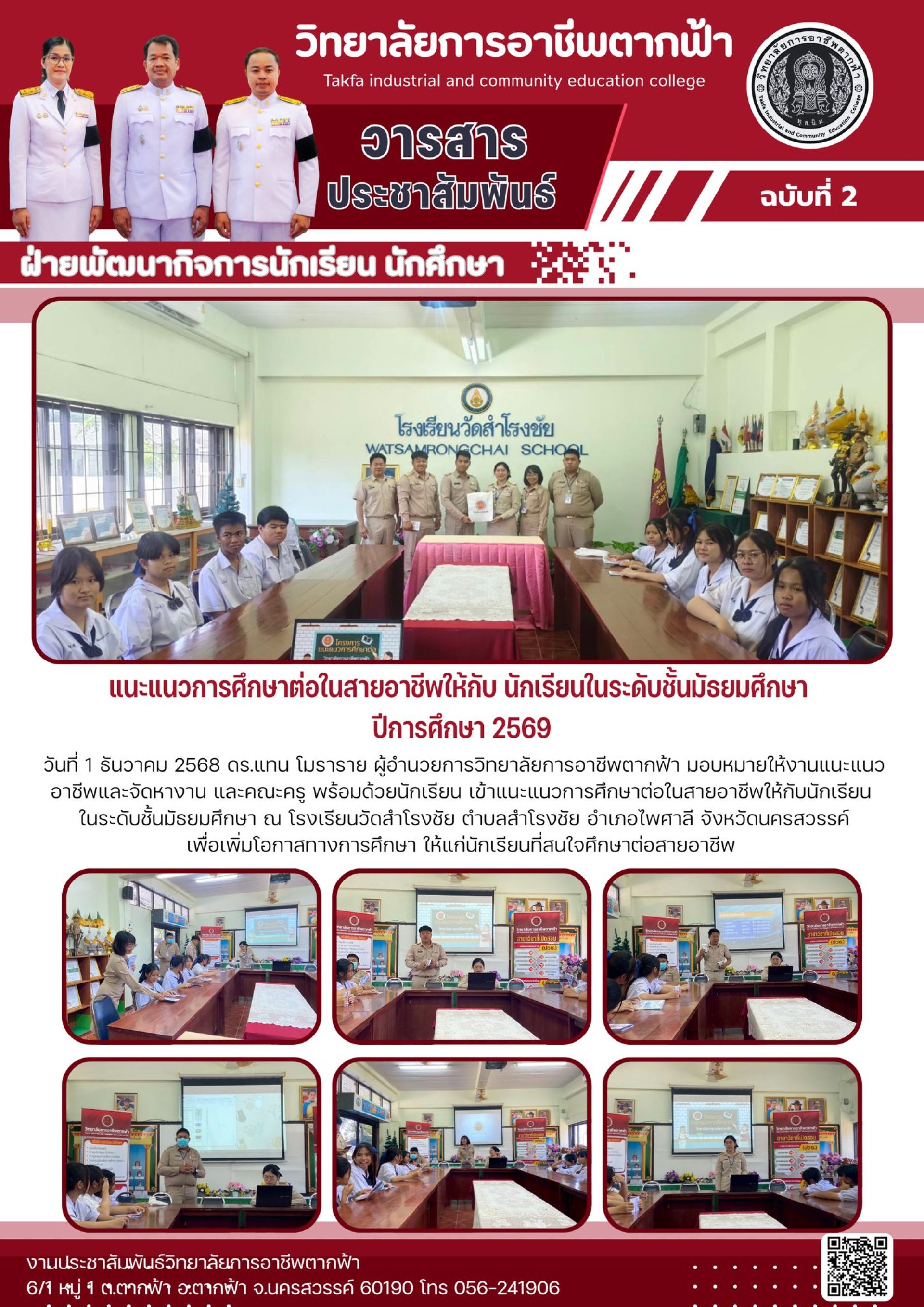 วารสารตากฟ้า ประจำเดือน ธันวาคม 2568 ฉบับที่ 2 แนะแนวการศึกษาต่อในสายอาชีพให้กับ นักเรียนในระดับชั้นมัธยมศึกษา ปีการศึกษา 2569