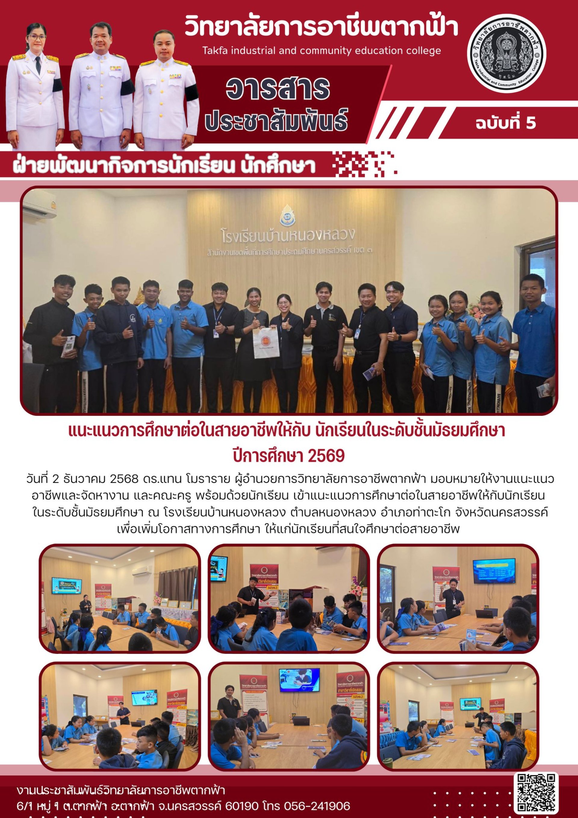 วารสารตากฟ้า ประจำเดือน ธันวาคม 2568 ฉบับที่ 4 แนะแนวการศึกษาต่อในสายอาชีพให้กับ นักเรียนในระดับชั้นมัธยมศึกษา ปีการศึกษา 2569