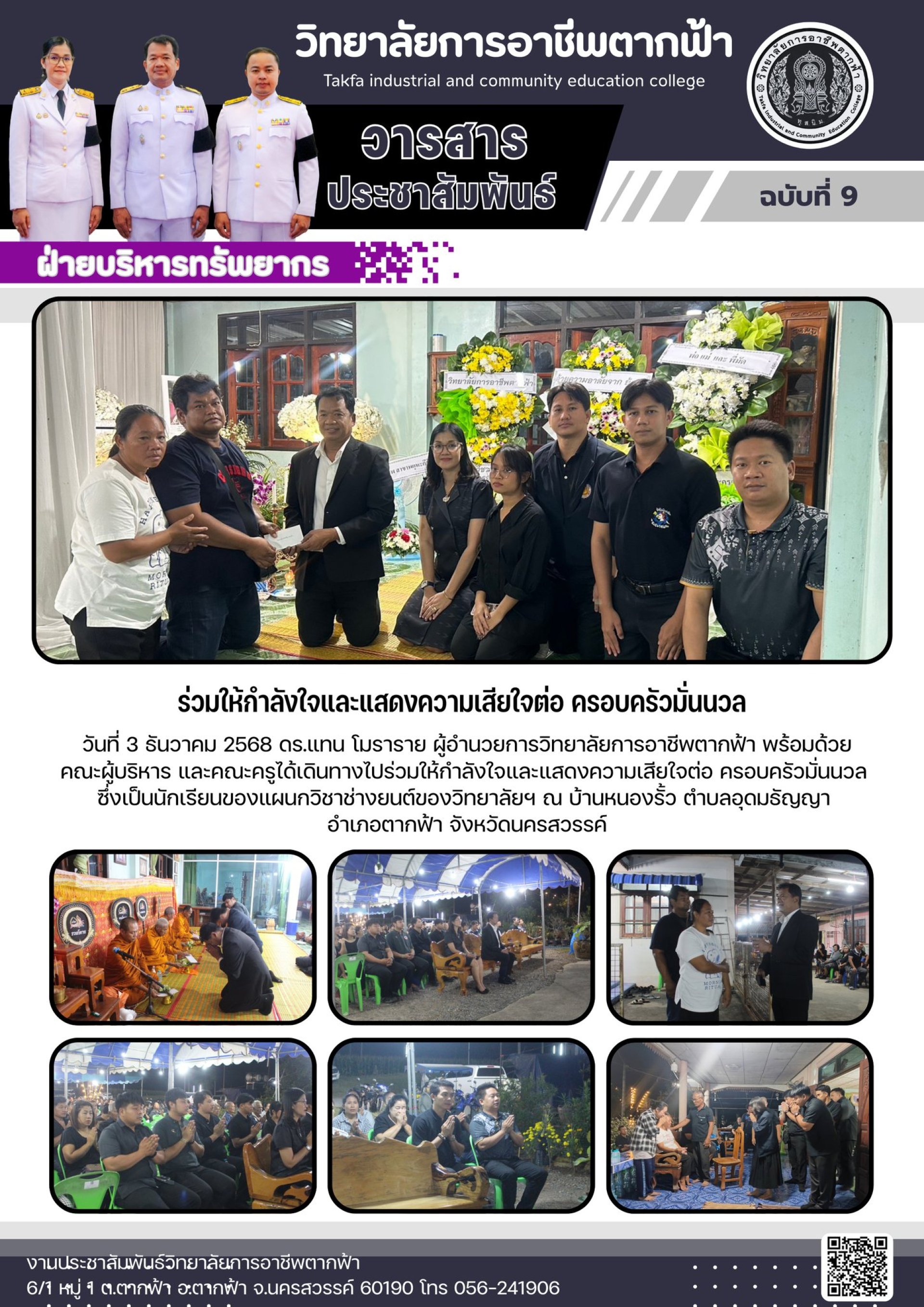 วารสารตากฟ้า ประจำเดือน ธันวาคม 2568 ฉบับที่ 9 ร่วมให้กำลังใจและแสดงความเสียใจต่อ ครอบครัวมั่นนวล