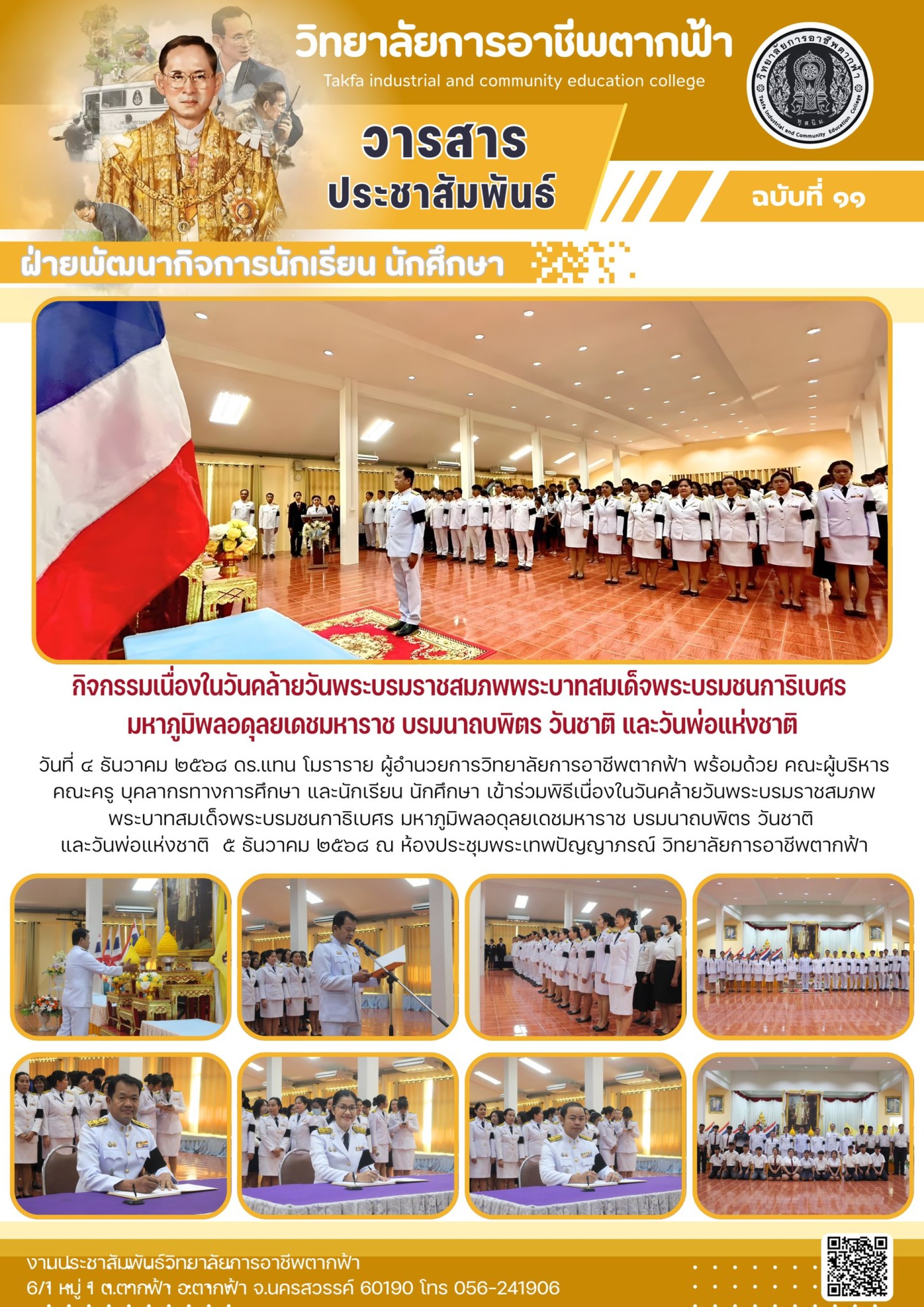 วารสารตากฟ้า ประจำเดือน ธันวาคม 2568 ฉบับที่ ๑๑ กิจกรรมเนื่องในวันคล้ายวันพระบรมราชสมภพพระบาทสมเด็จพระบรมชนการิเบศร มหาภูมิพลอดุลยเดชมหาราช บรมนาถบพิตร วันชาติ และวันพ่อแห่งชาติ