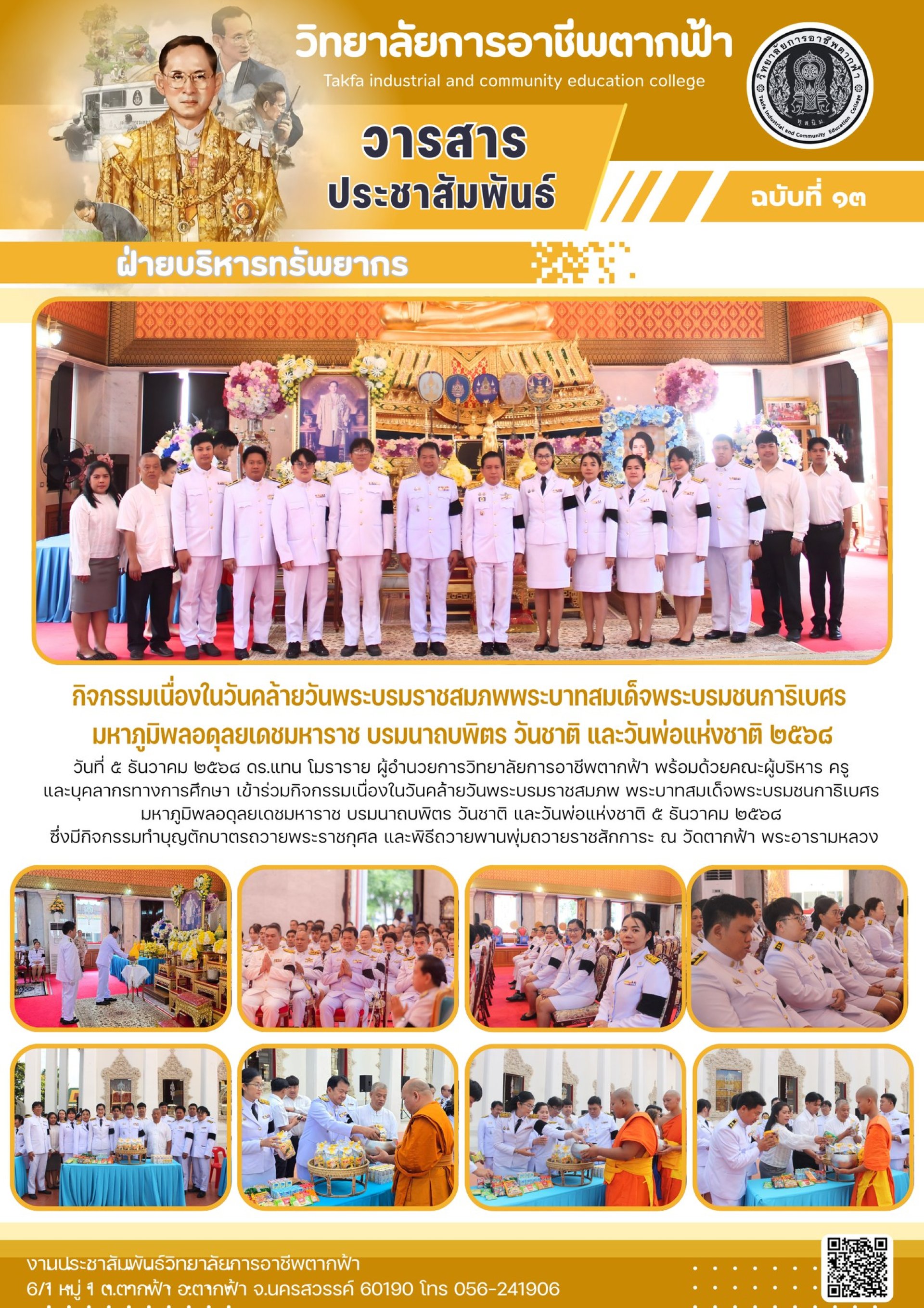 วารสารตากฟ้า ประจำเดือน ธันวาคม ๒๕๖๘ ฉบับที่ ๑๓ กิจกรรมเนื่องในวันคล้ายวันพระบรมราชสมภพพระบาทสมเด็จพระบรมชนการิเบศร มหาภูมิพลอดุลยเดชมหาราช บรมนาถบพิตร วันชาติ และวันพ่อแห่งชาติ ๒๕๖๘