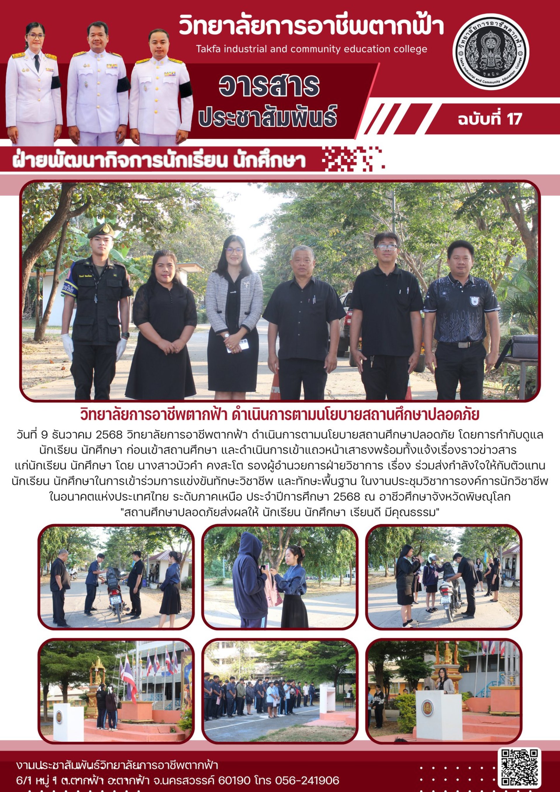 วารสารตากฟ้า ประจำเดือน ธันวาคม 2568 ฉบับที่ 17 วิทยาลัยการอาชีพตากฟ้า ดำเนินการตามนโยบายสถานศึกษาปลอดภัย