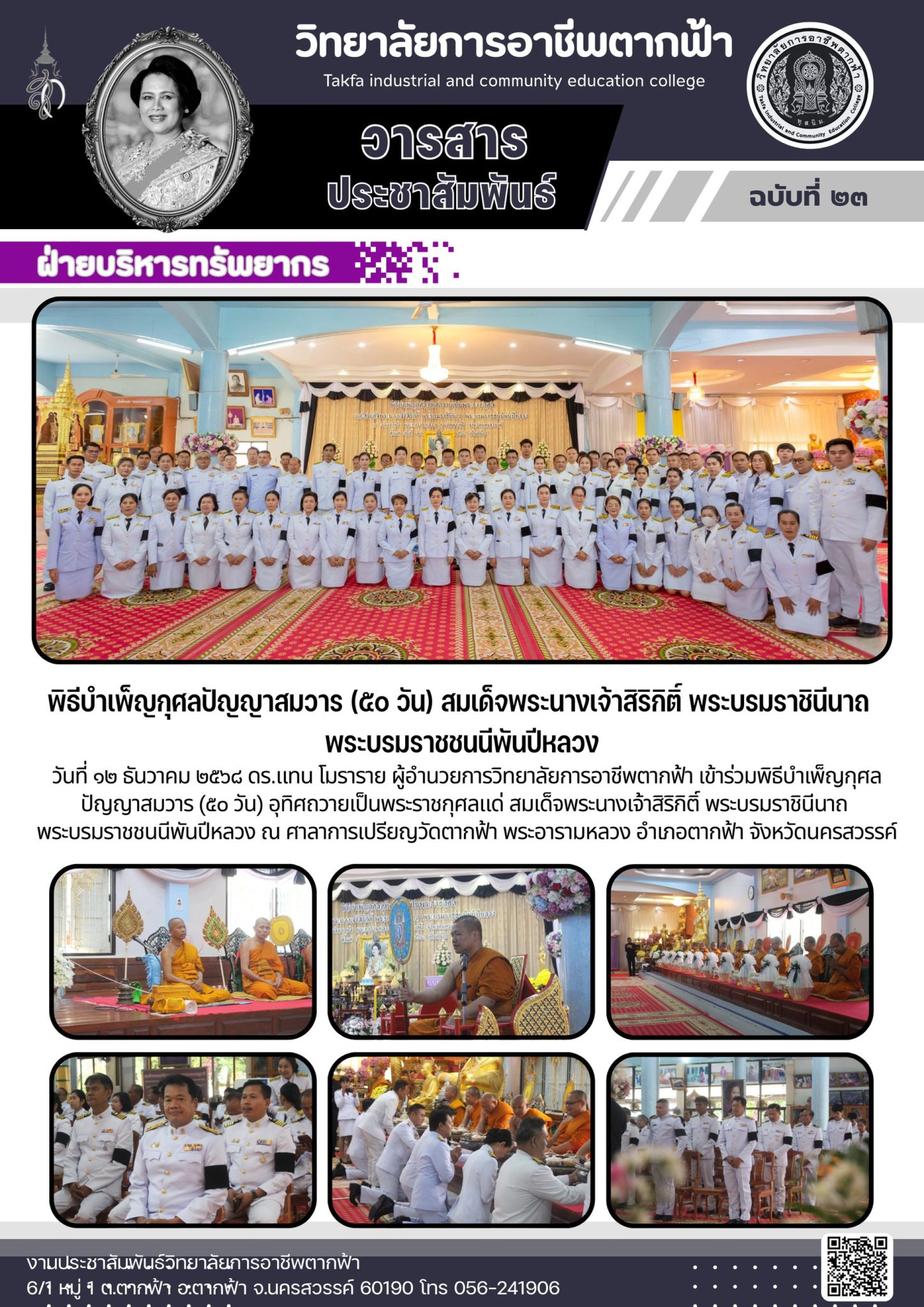 วารสารตากฟ้า ประจำเดือน ธันวาคม ๒๕๖๘ ฉบับที่ ๒๓ พิธีบำเพ็ญกุศลปัญญาสมวาร (๕๐ วัน) สมเด็จพระนางเจ้าสิริกิติ์ พระบรมราชินีนาถ พระบรมราชชนนีพันปีหลวง