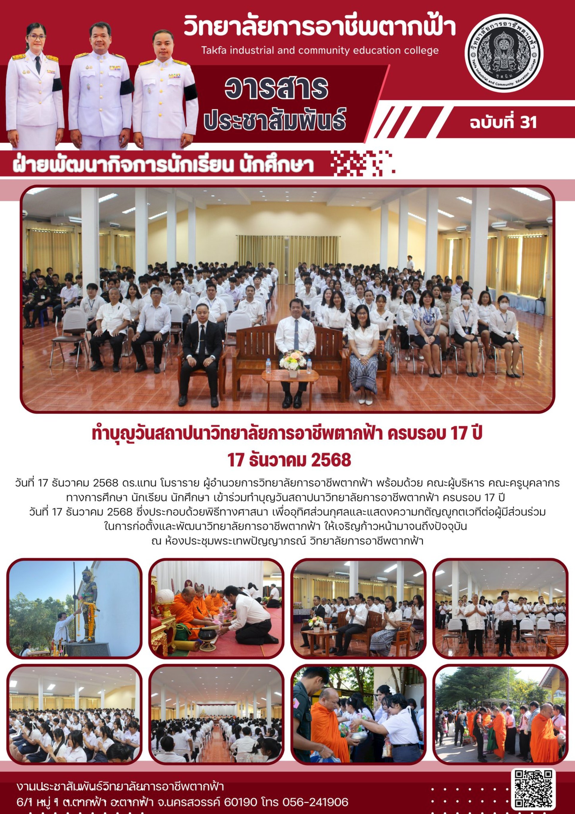 ฉบับที่ 31 ทำบุญวันสถาปนาวิทยาลัยการอาชีพตากฟ้า ครบรอบ 17 ปี 17 ธันวาคม 2568