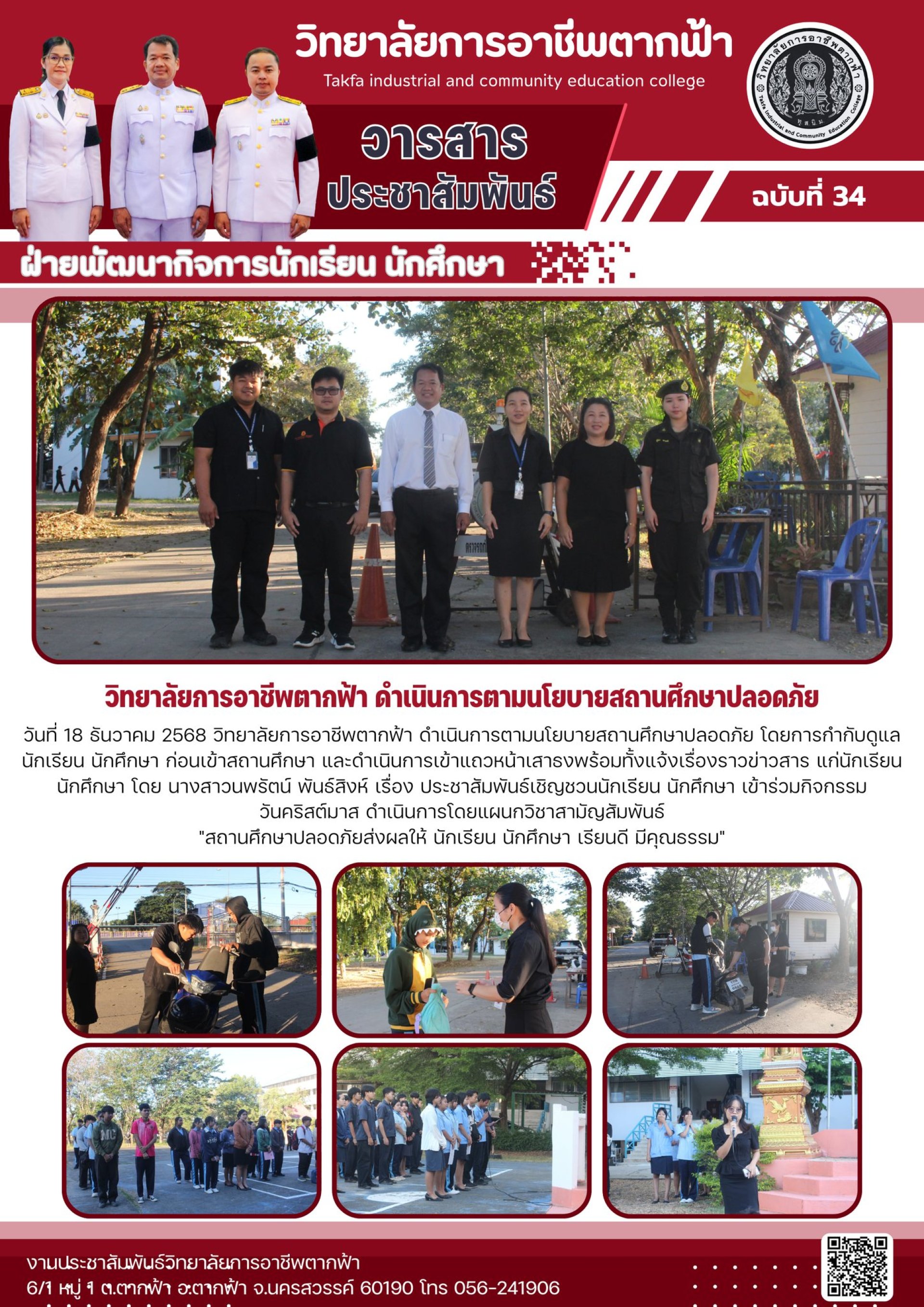 วารสารตากฟ้า ประจำเดือน ธันวาคม 2568 ฉบับที่ 34 วิทยาลัยการอาชีพตากฟ้า ดำเนินการตามนโยบายสถานศึกษาปลอดภัย