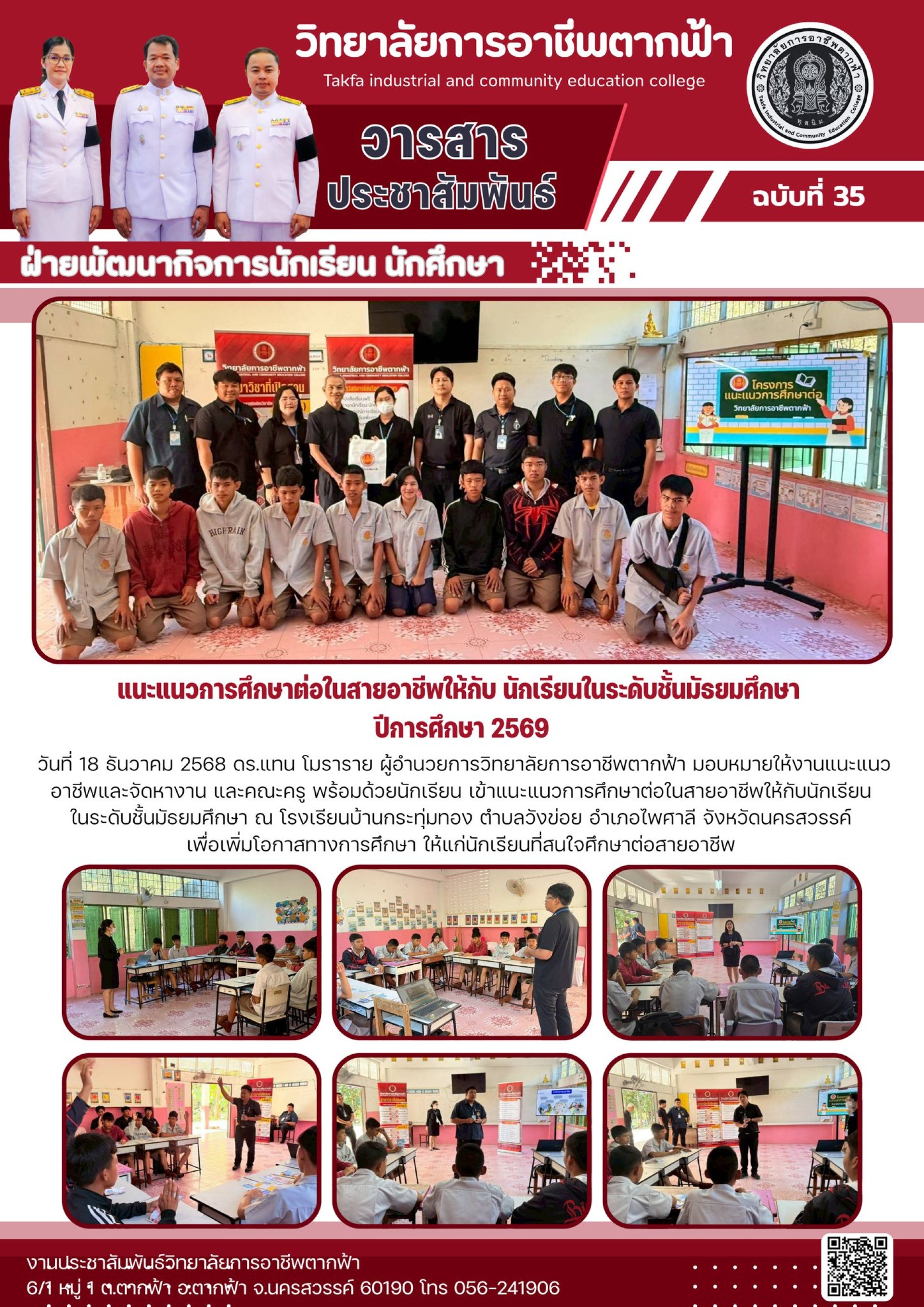 วารสารตากฟ้า ประจำเดือน ธันวาคม 2568 ฉบับที่ 35 แนะแนวการศึกษาต่อในสายอาชีพให้กับ นักเรียนในระดับชั้นมัธยมศึกษา ปีการศึกษา 2569