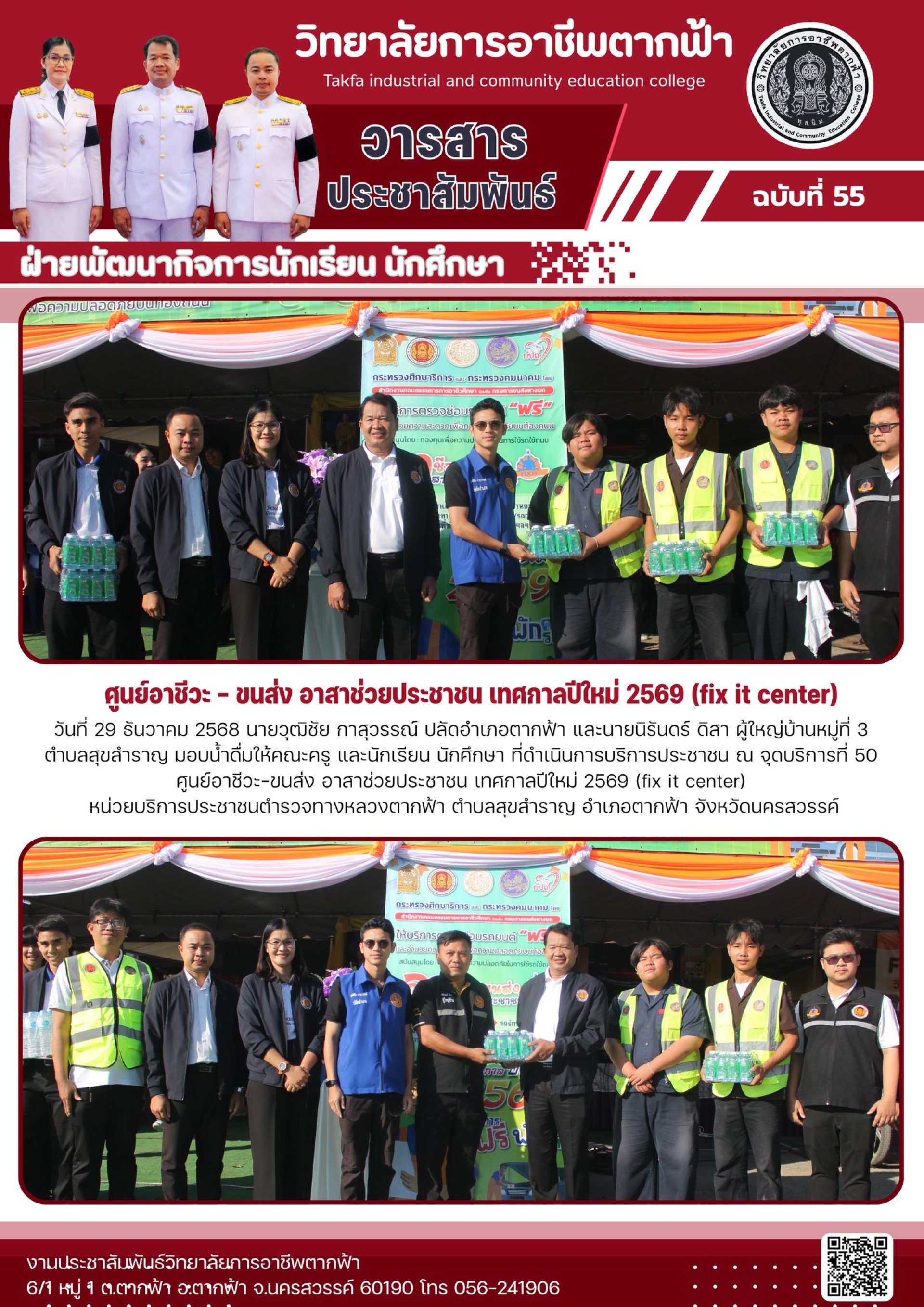 วารสารตากฟ้า ประจำเดือน ธันวาคม 2568 ฉบับที่ 55 ศูนย์อาชีวะ - ขนส่ง อาสาช่วยประชาชน เทศกาลปีใหม่ 2569 (fix it center)