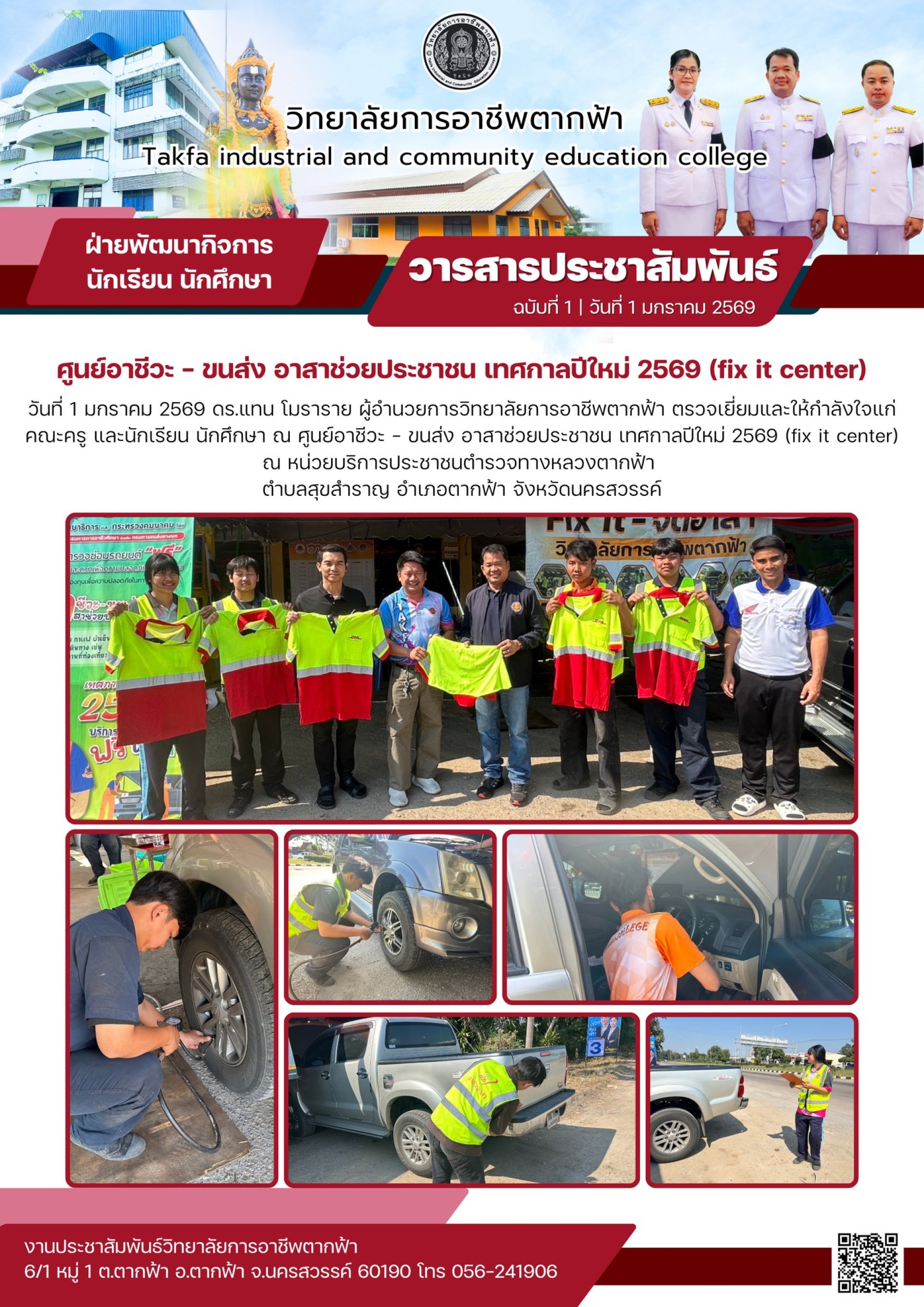 วารสารตากฟ้า ประจำเดือน มกราคม 2569 ฉบับที่ 1 ศูนย์อาชีวะ - ขนส่ง อาสาช่วยประชาชน เทศกาลปีใหม่ 2569 (fix it center)