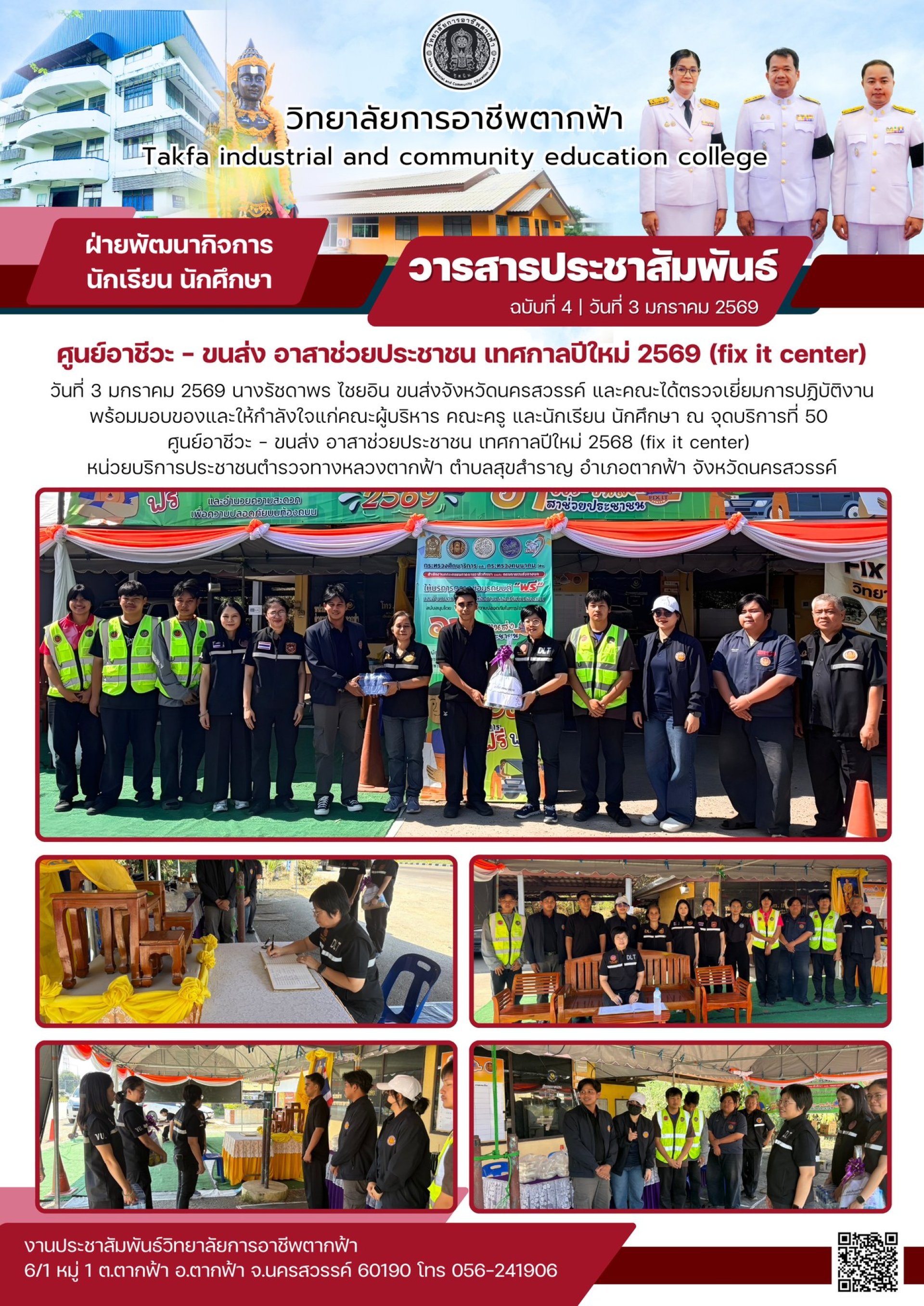 วารสารตากฟ้า ประจำเดือน มกราคม 2569 ฉบับที่ 4 ศูนย์อาชีวะ - ขนส่ง อาสาช่วยประชาชน เทศกาลปีใหม่ 2569 (fix it center)