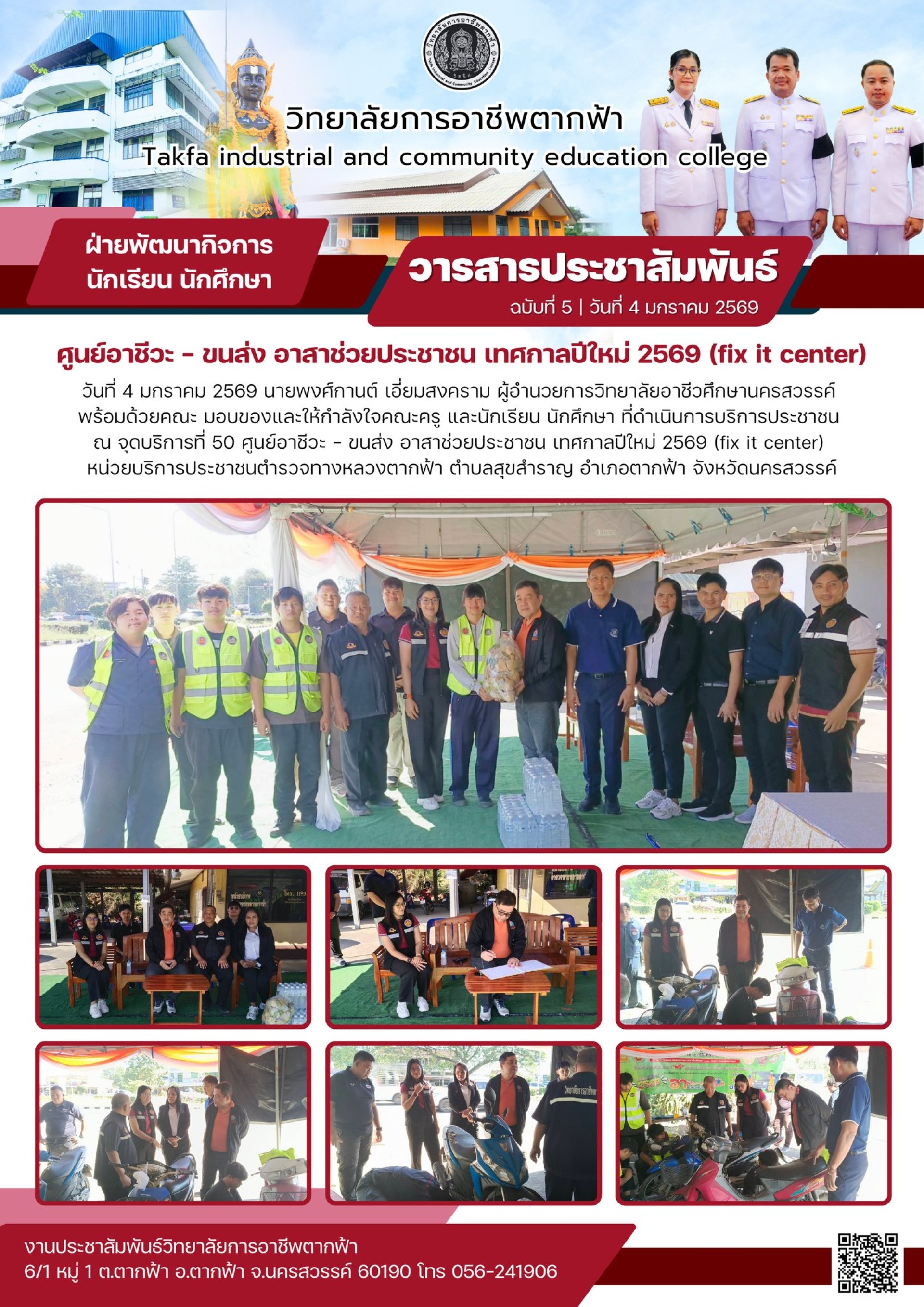 วารสารตากฟ้า ประจำเดือน มกราคม 2569 ฉบับที่ 5 ศูนย์อาชีวะ - ขนส่ง อาสาช่วยประชาชน เทศกาลปีใหม่ 2569 (fix it center)