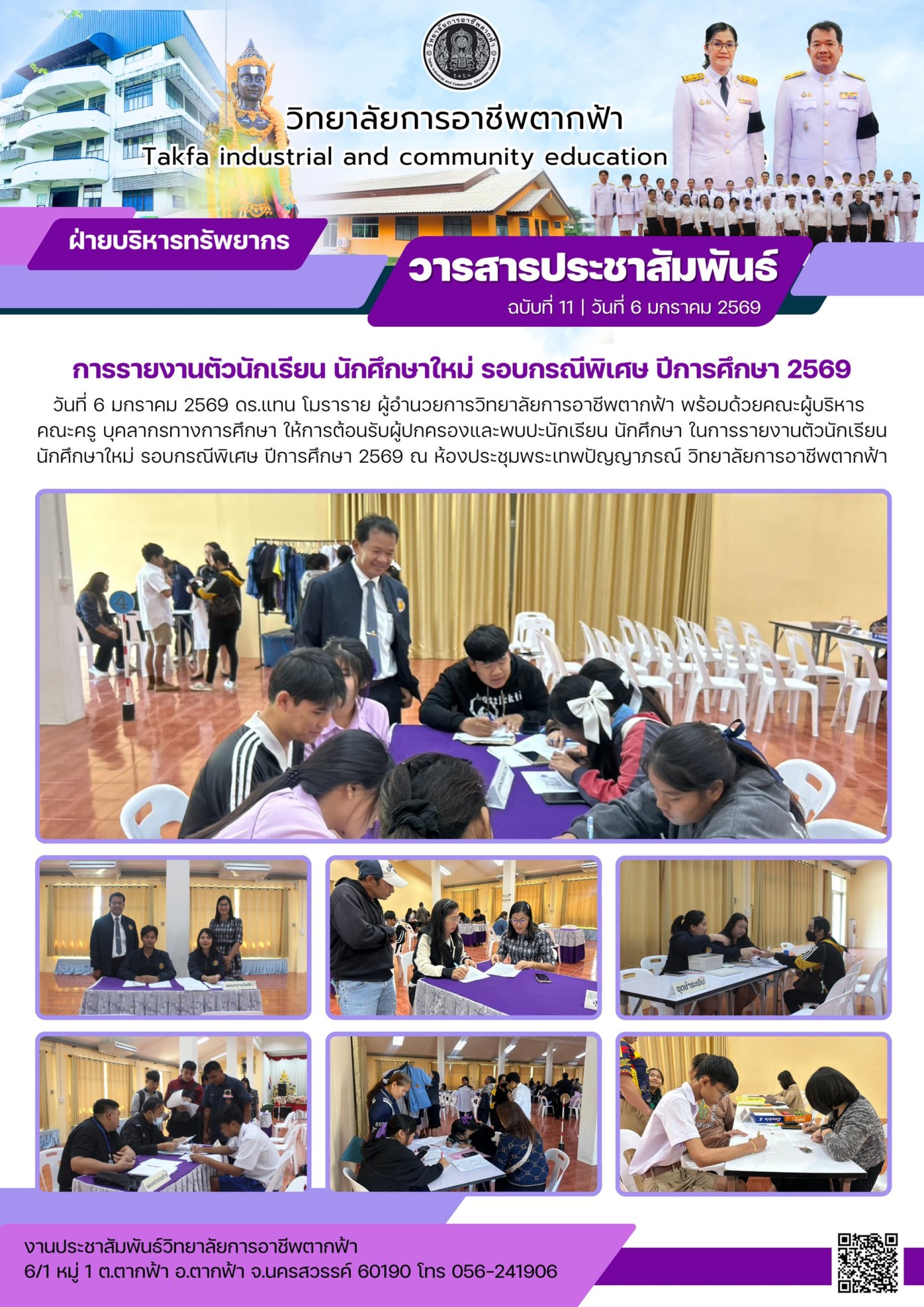 วารสารตากฟ้า ประจำเดือน มกราคม 2569 ฉบับที่ 11 การรายงานตัวนักเรียน นักศึกษาใหม่ รอบกรณีพิเศษ ปีการศึกษา 2569