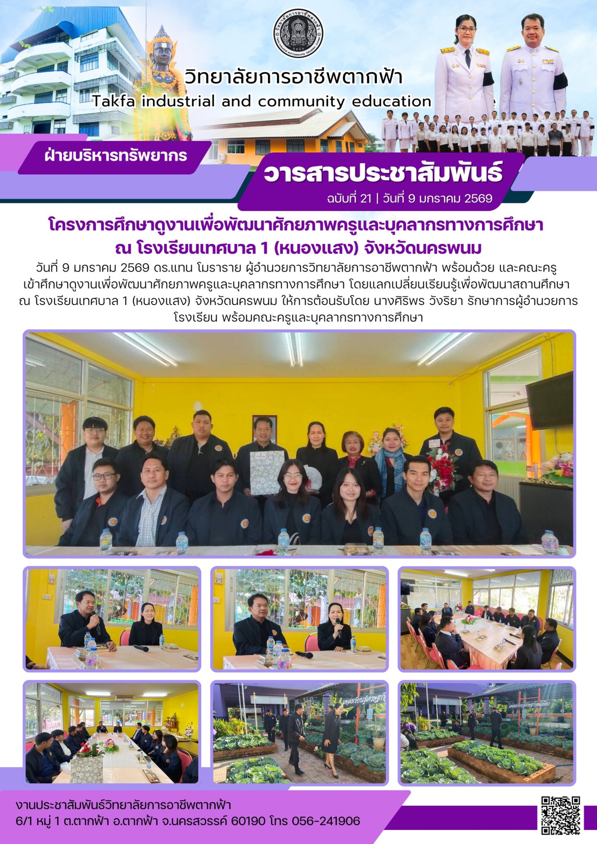 วารสารตากฟ้า ประจำเดือน มกราคม 2569 ฉบับที่ 21 โครงการศึกษาดูงานเพื่อพัฒนาศักยภาพครูและบุคลากรทางการศึกษา ณ โรงเรียนเทศบาล 1 (หนองแสง) จังหวัดนครพนม