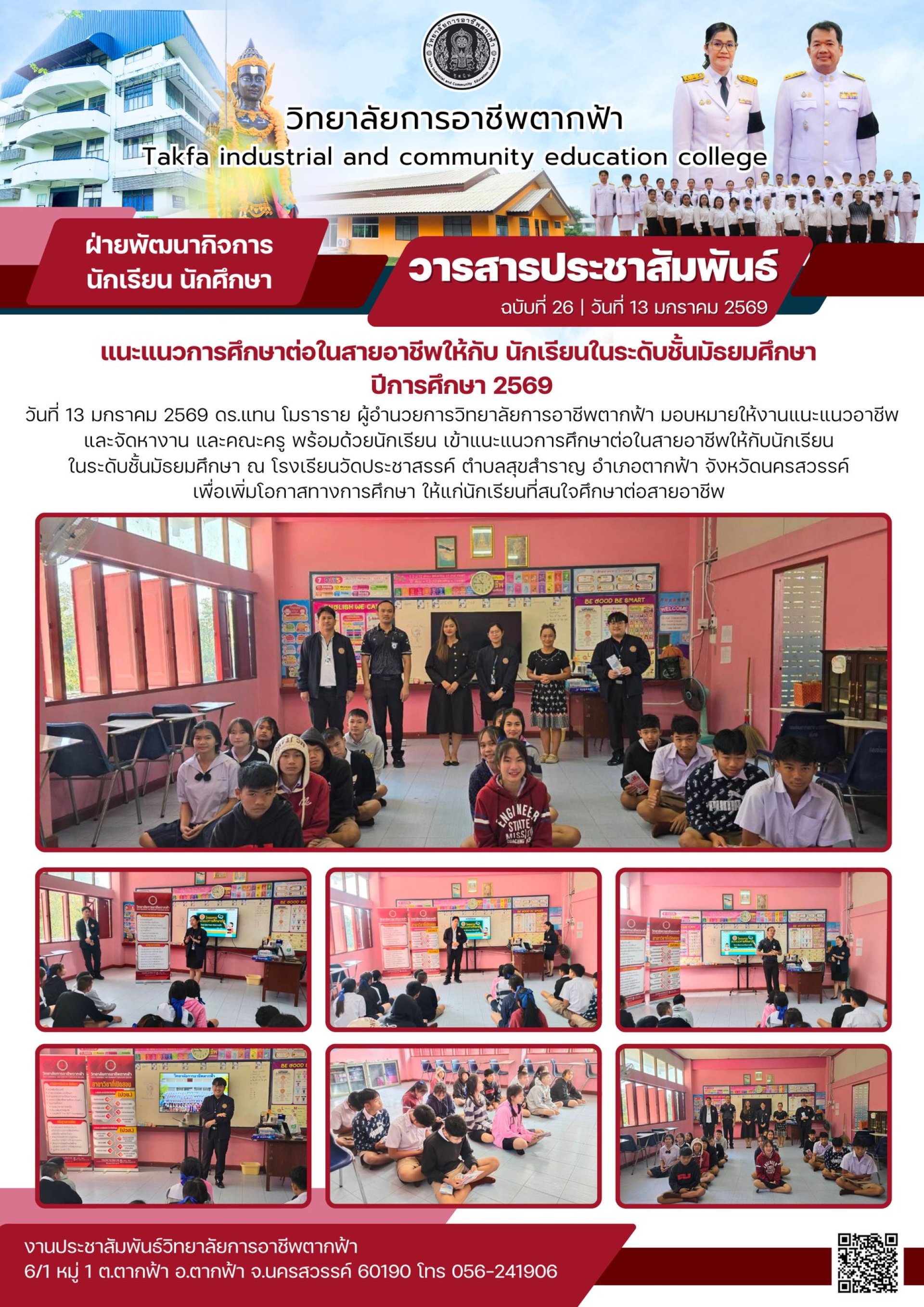 วารสารตากฟ้า ประจำเดือน มกราคม 2569 ฉบับที่ 26 แนะแนวการศึกษาต่อในสายอาชีพให้กับ นักเรียนในระดับชั้นมัธยมศึกษา ปีการศึกษา 2569