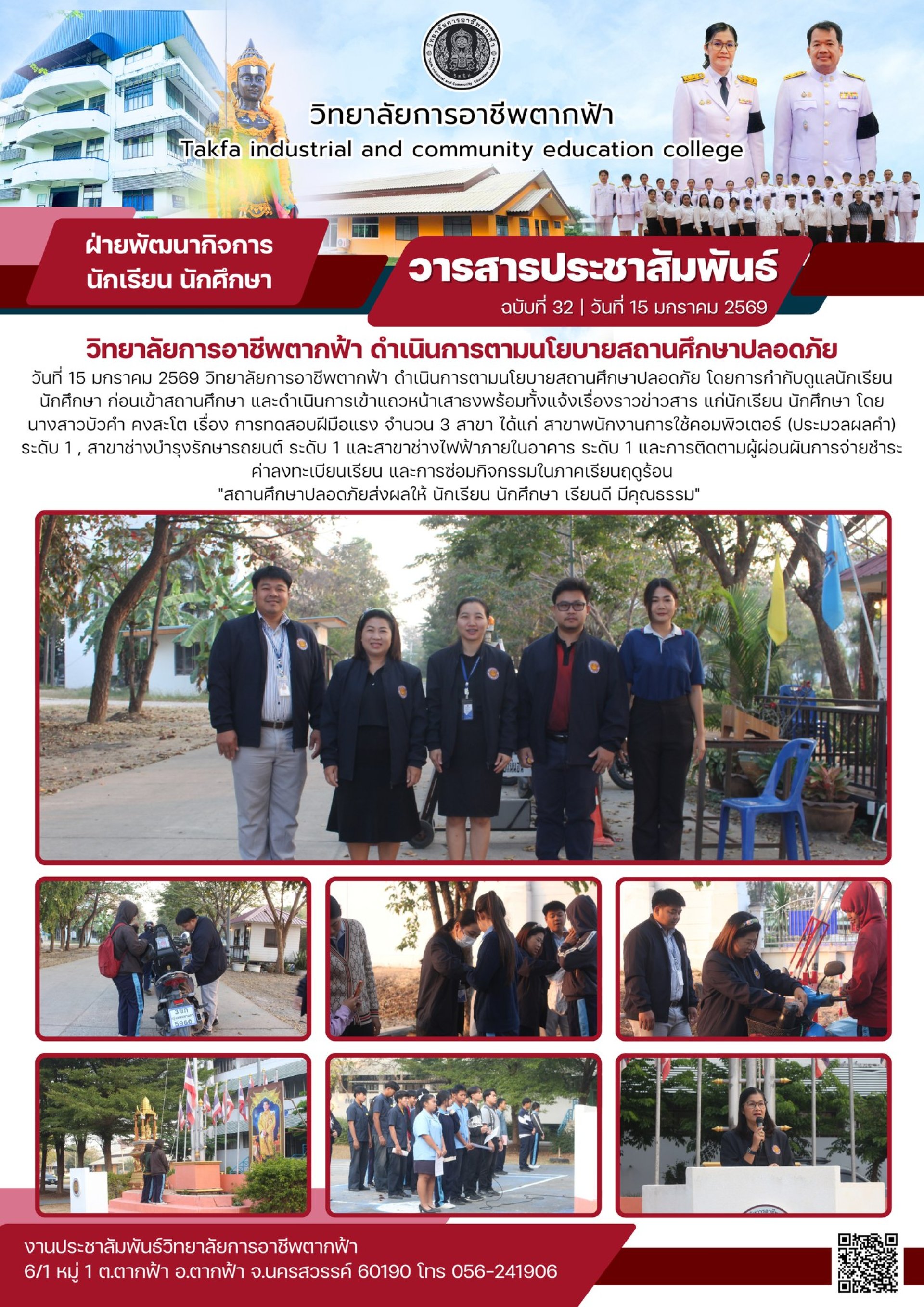 ฉบับที่ 32 วิทยาลัยการอาชีพตากฟ้า ดำเนินการตามนโยบายสถานศึกษาปลอดภัย