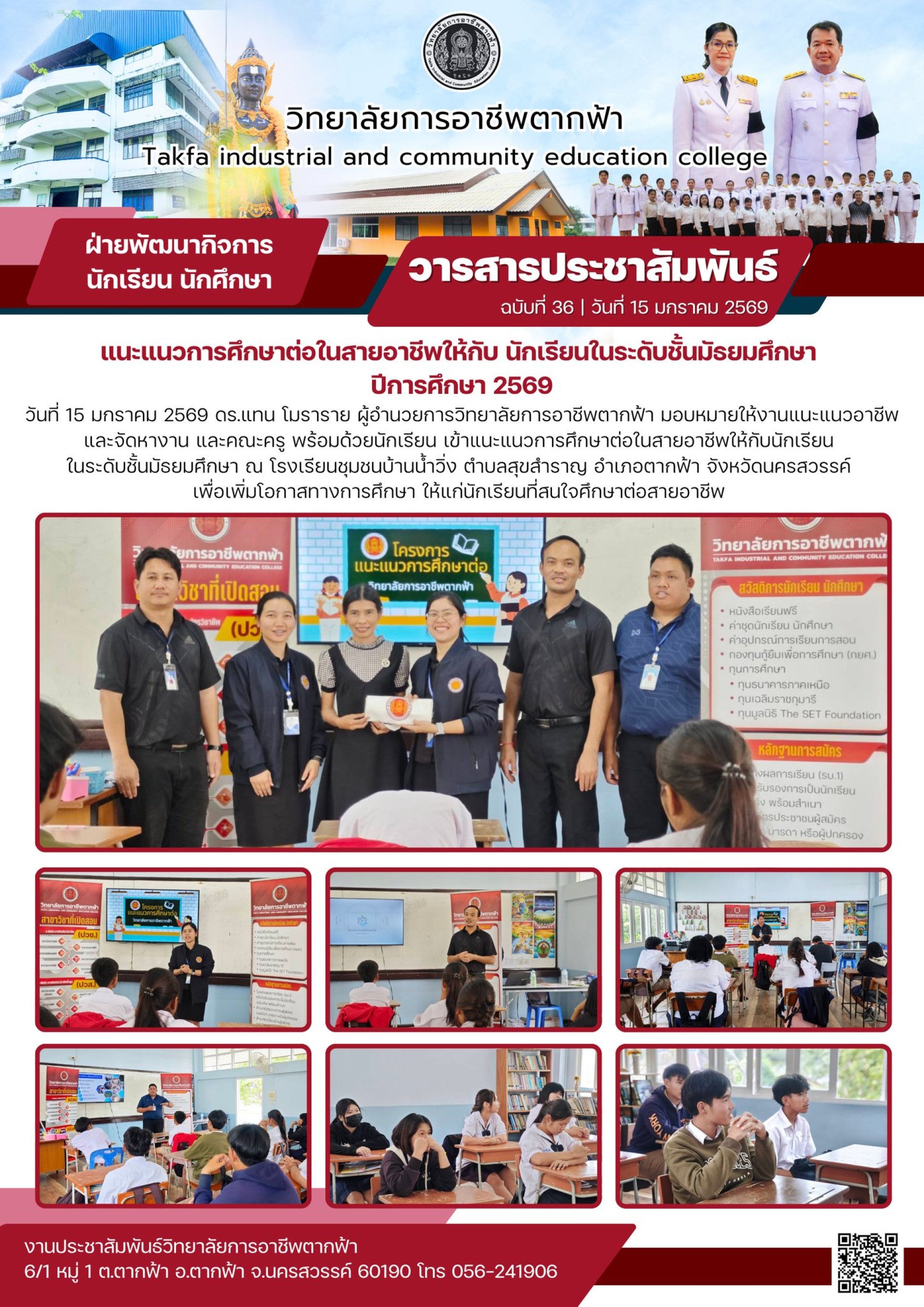 ฉบับที่ 36 แนะแนวการศึกษาต่อในสายอาชีพให้กับ นักเรียนในระดับชั้นมัธยมศึกษา ปีการศึกษา 2569
