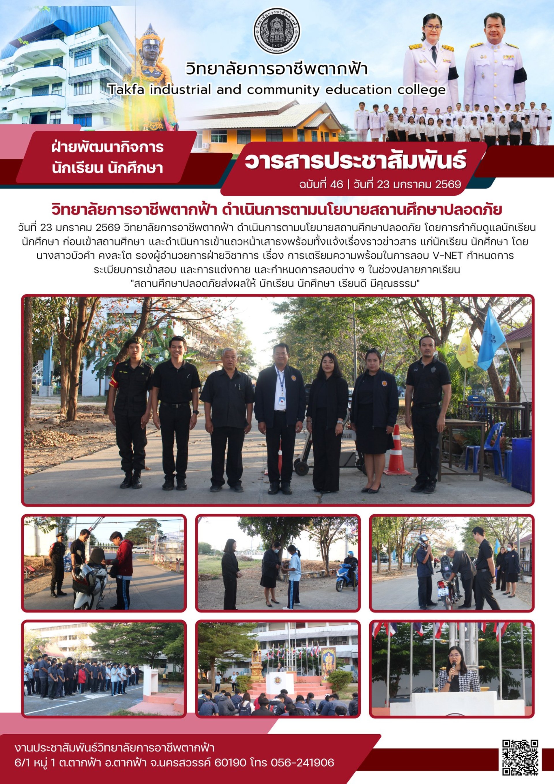 ฉบับที่ 46 วิทยาลัยการอาชีพตากฟ้า ดำเนินการตามนโยบายสถานศึกษาปลอดภัย