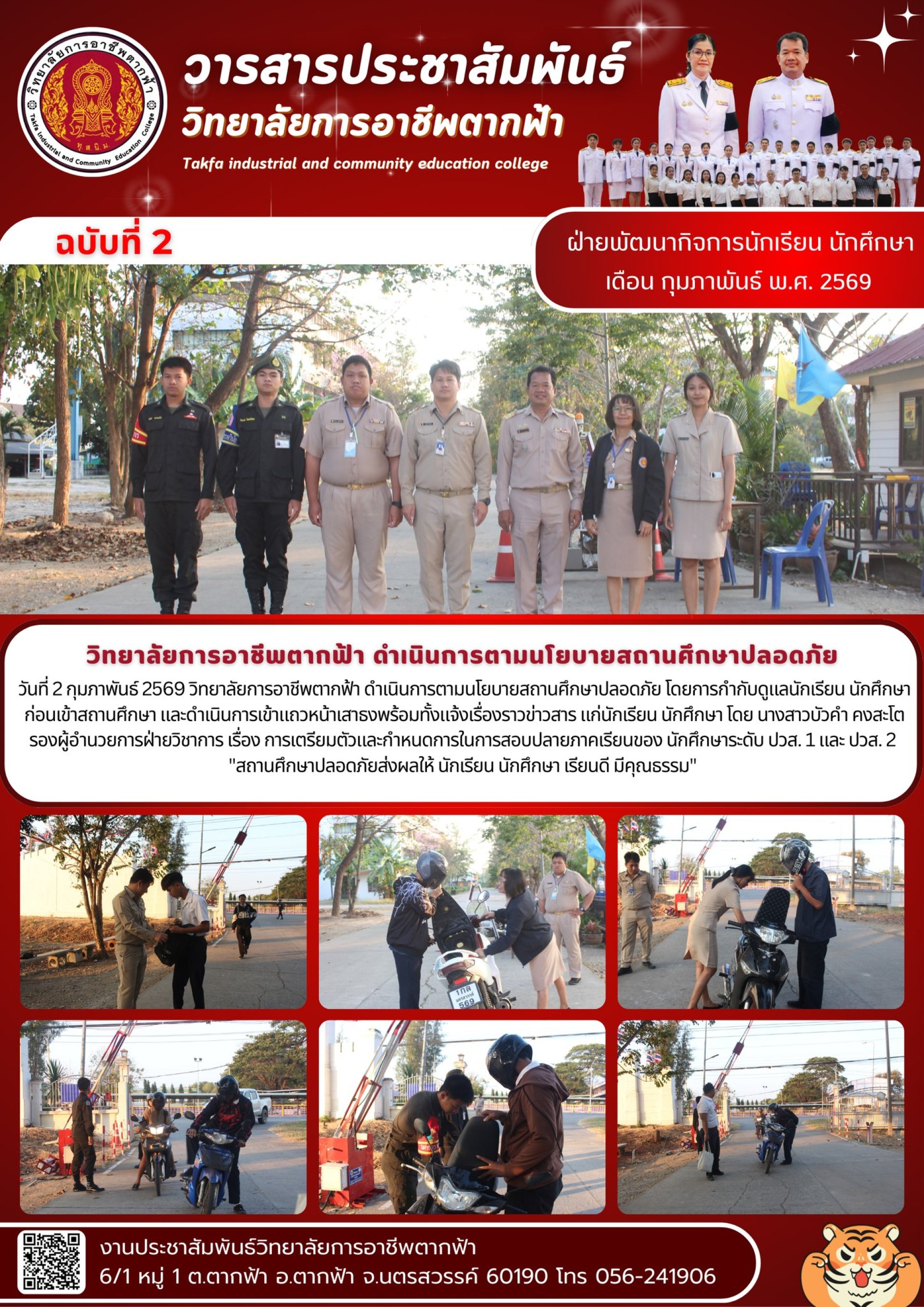 วารสารตากฟ้า ประจำเดือน กุมภาพันธ์ 2569 ฉบับที่ 2 วิทยาลัยการอาชีพตากฟ้า ดำเนินการตามนโยบายสถานศึกษาปลอดภัย